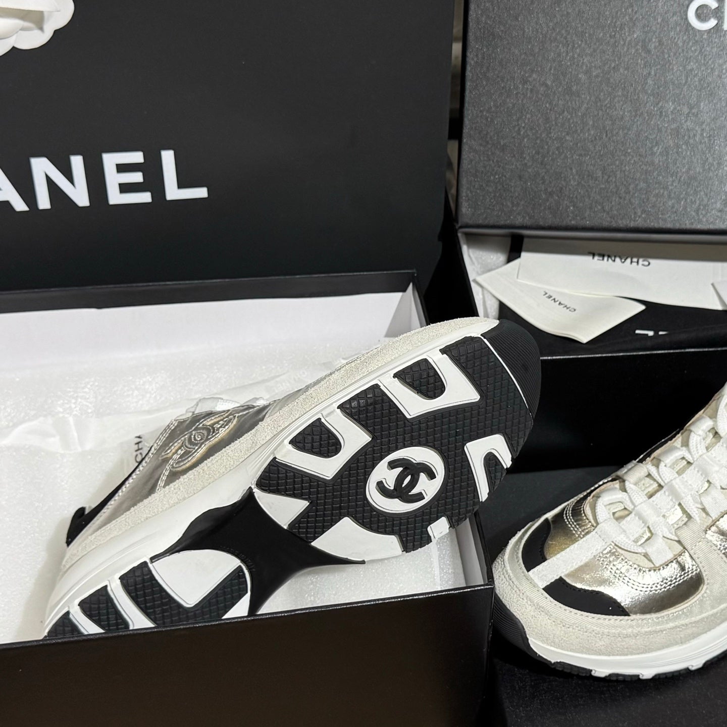 CC 25A Trainers Light Gold Black Cream Laminated Calfskin And Suede Calfskin 352120