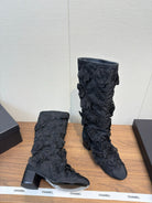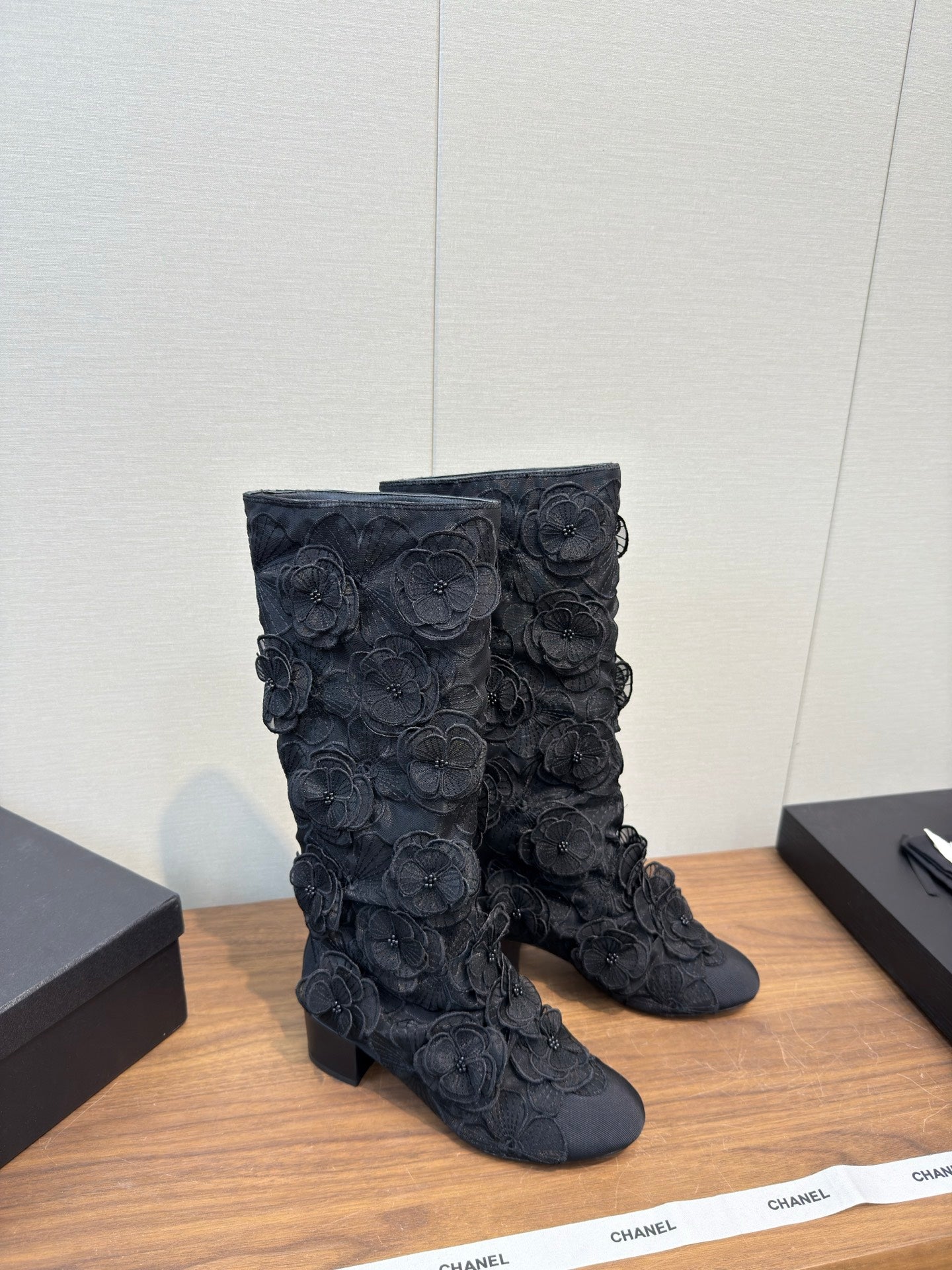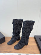 CC 25b Camellia Flower Long Boots 40mm Black Mesh & Frabic 429750