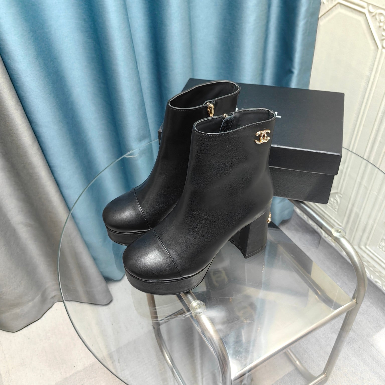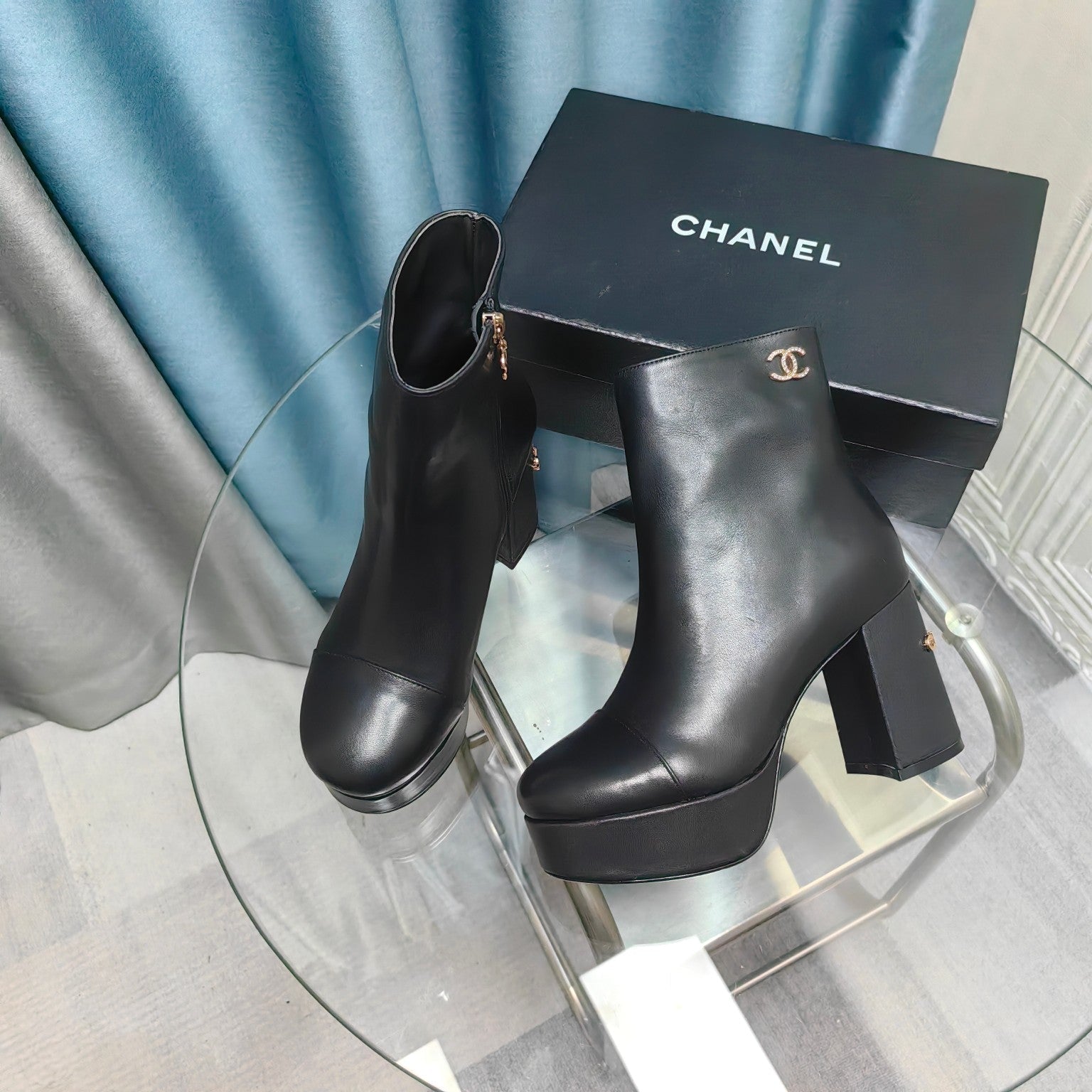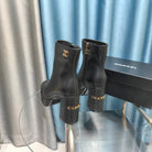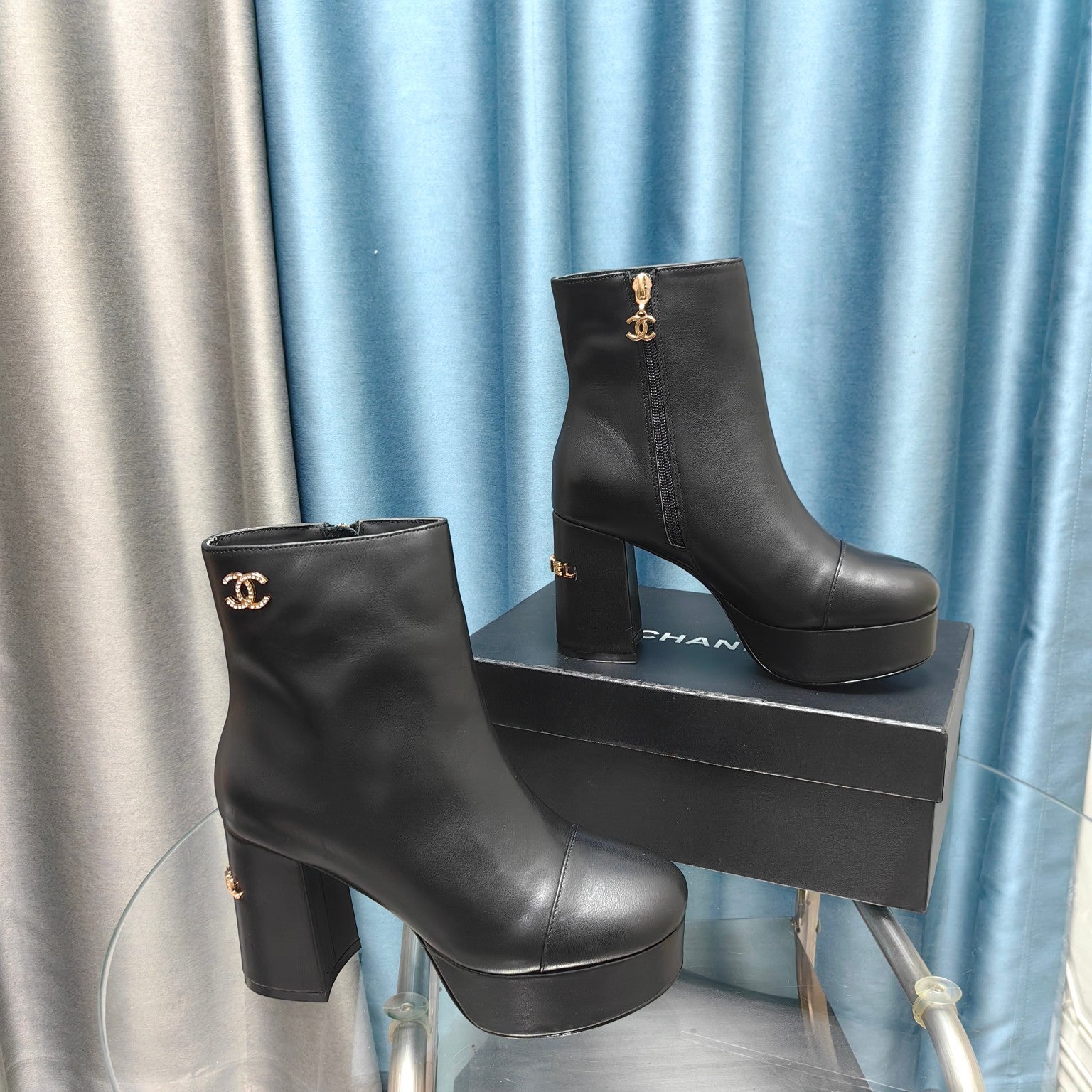 CC 25B Rhinestone Chunky Heel Ankle Boots 90mm Black Sheepskin 444302