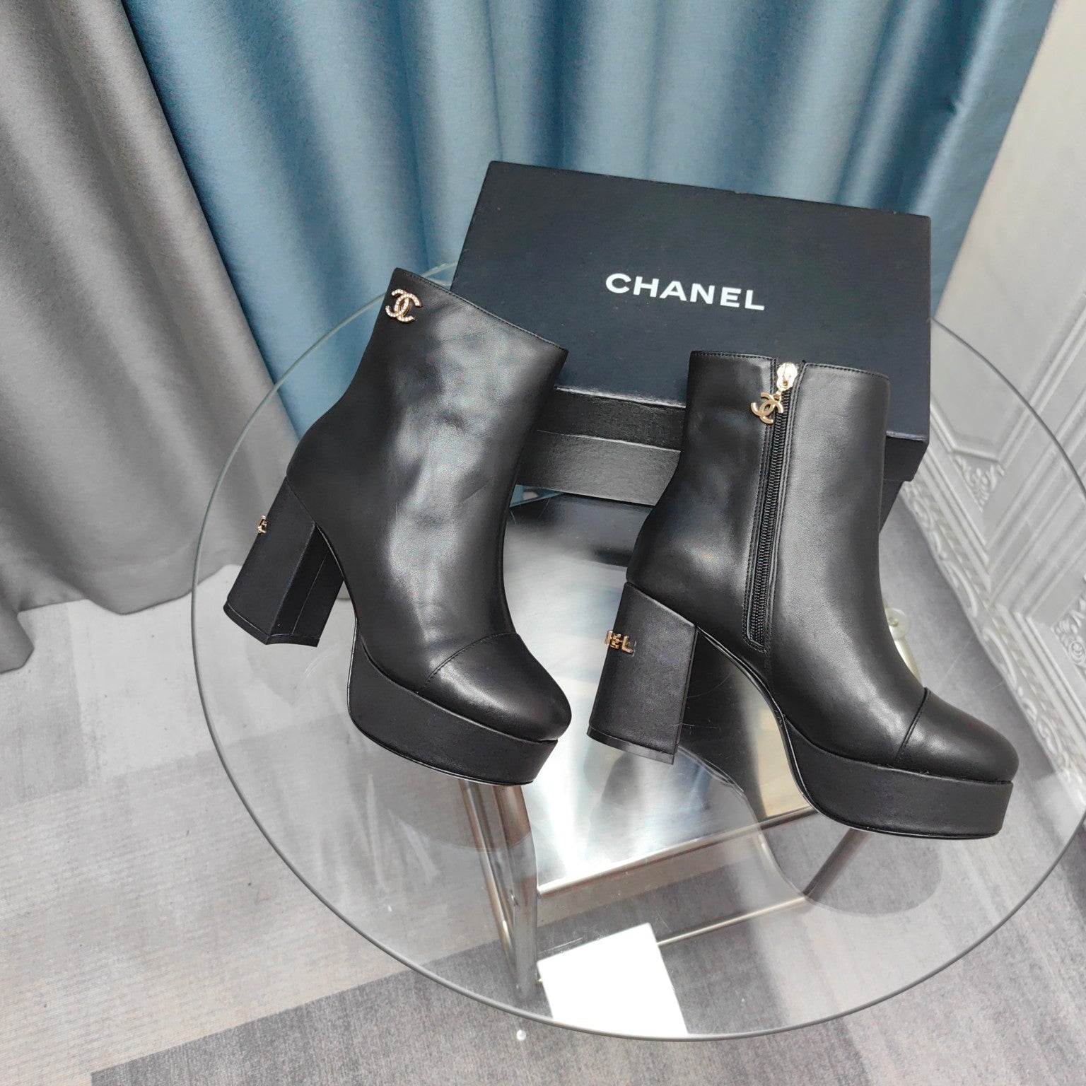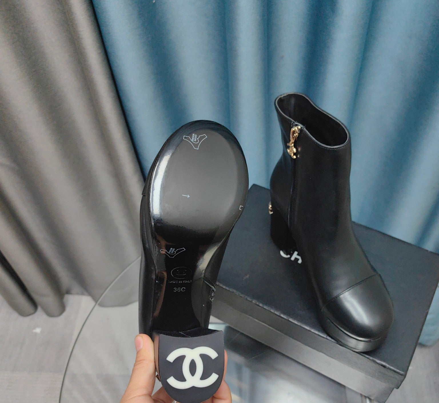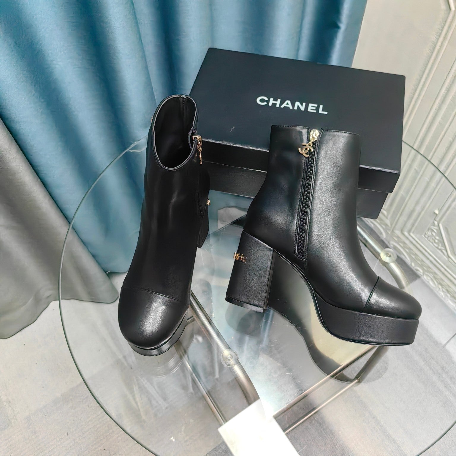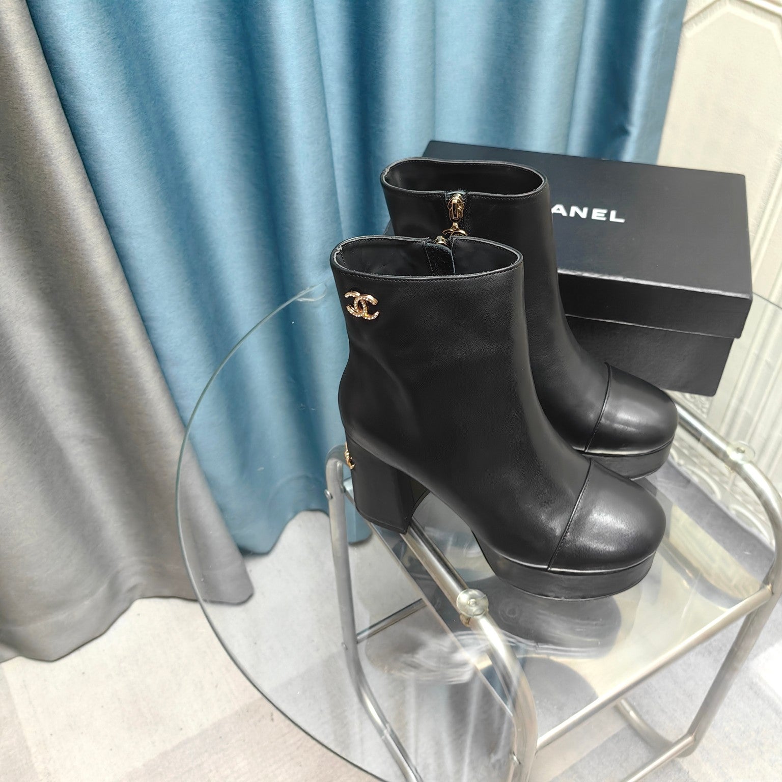 CC 25B Rhinestone Chunky Heel Ankle Boots 90mm Black Sheepskin 444302