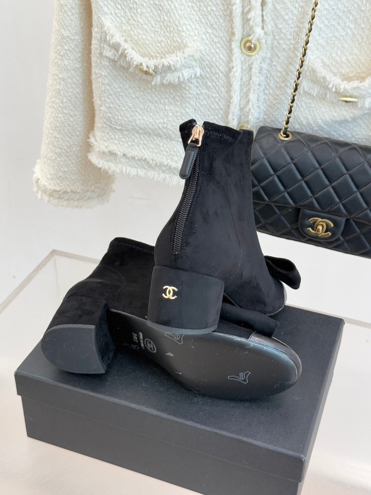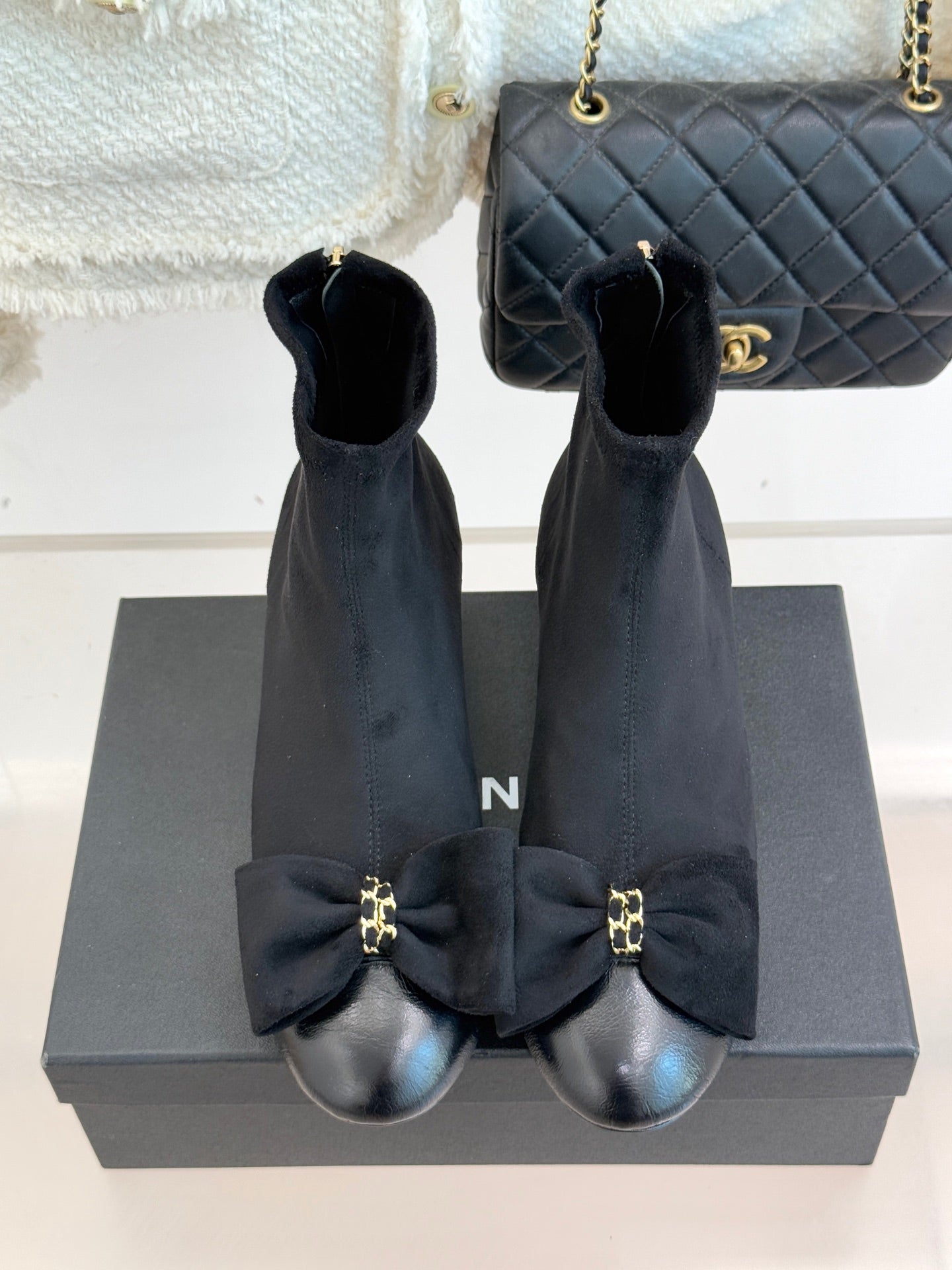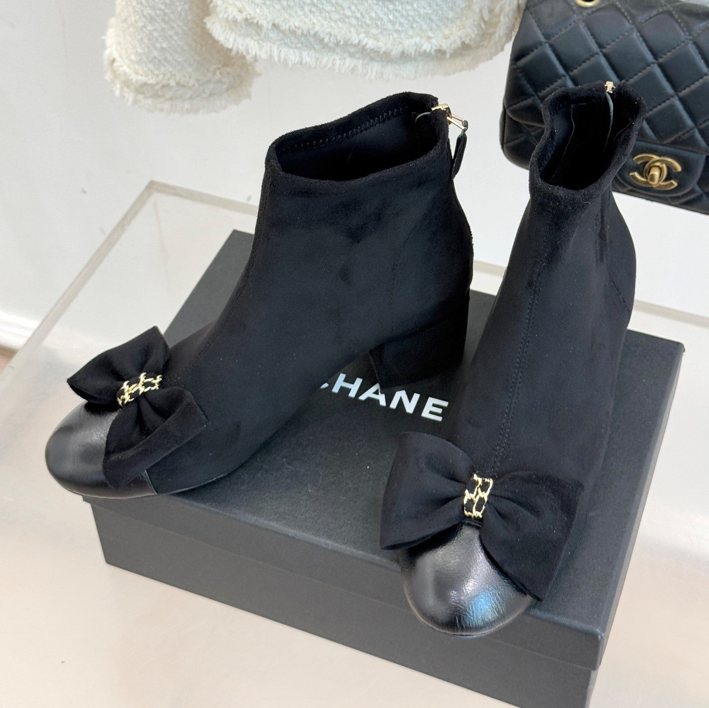 CC 25K Bow Chain Chunky Stretch Boots Black Suede 512072