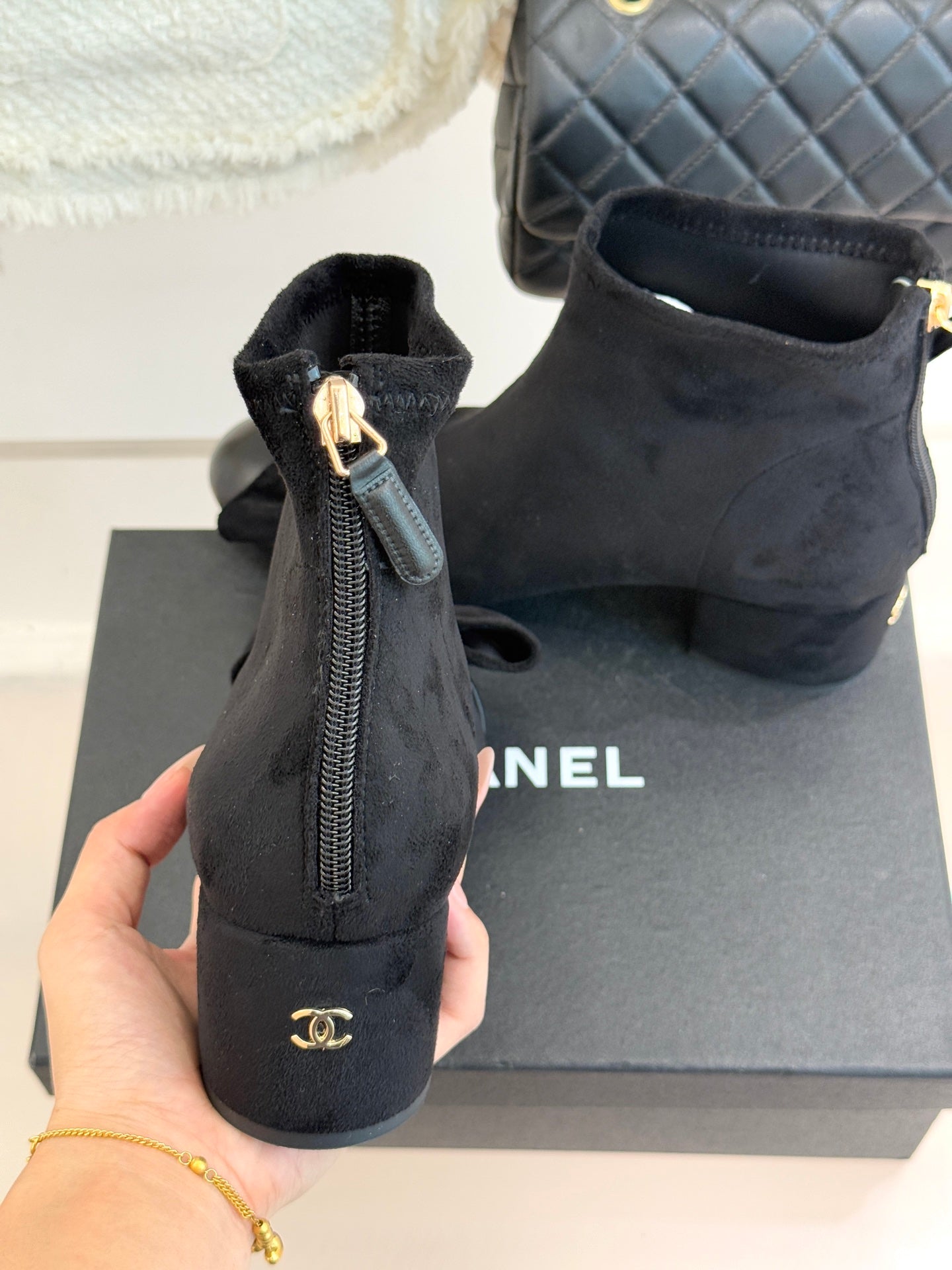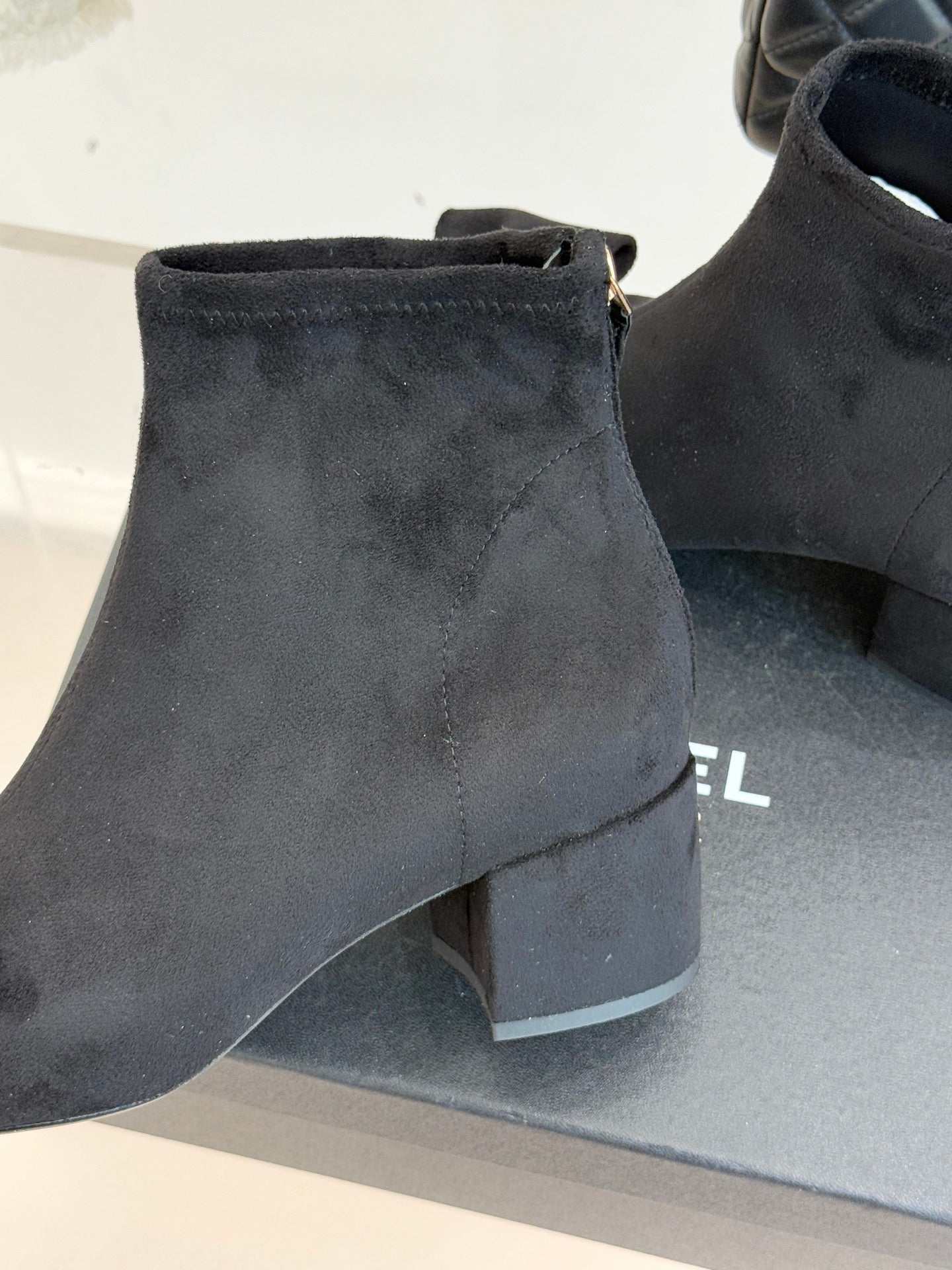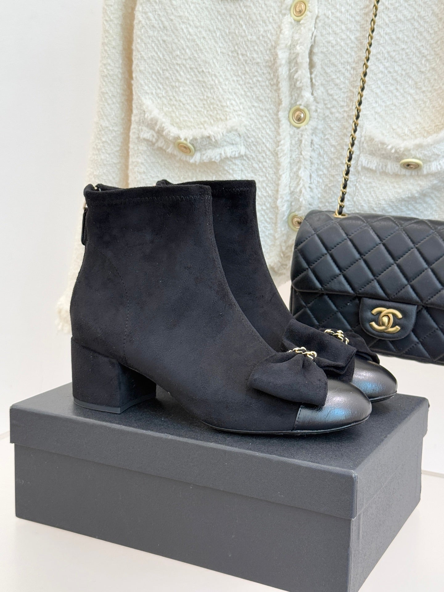 CC 25K Bow Chain Chunky Stretch Boots Black Suede 512072