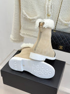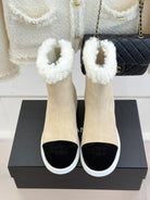 CC 25K Double C Colorblock Furry Snow Boots Warm Beige Suede 512068