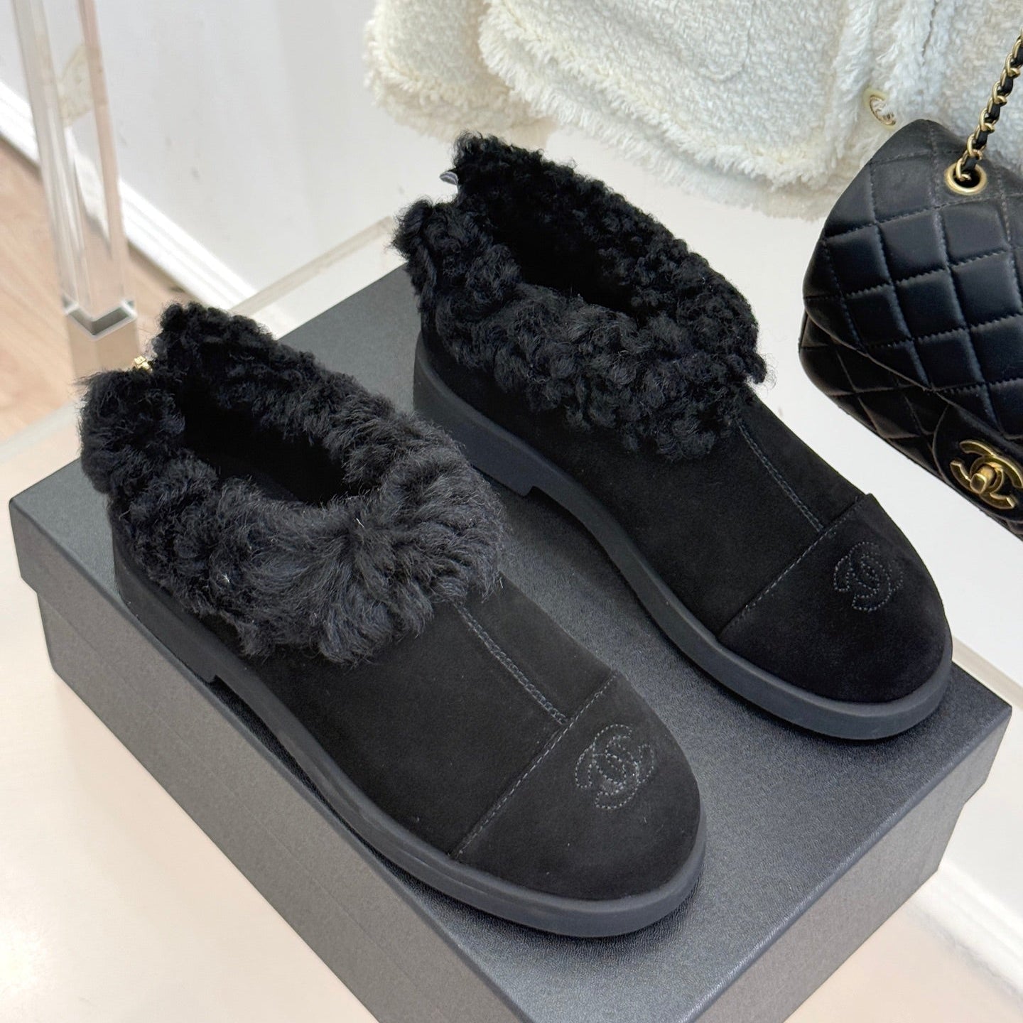 CC 25s Furry Snow Boots Black Suede Wool 512064