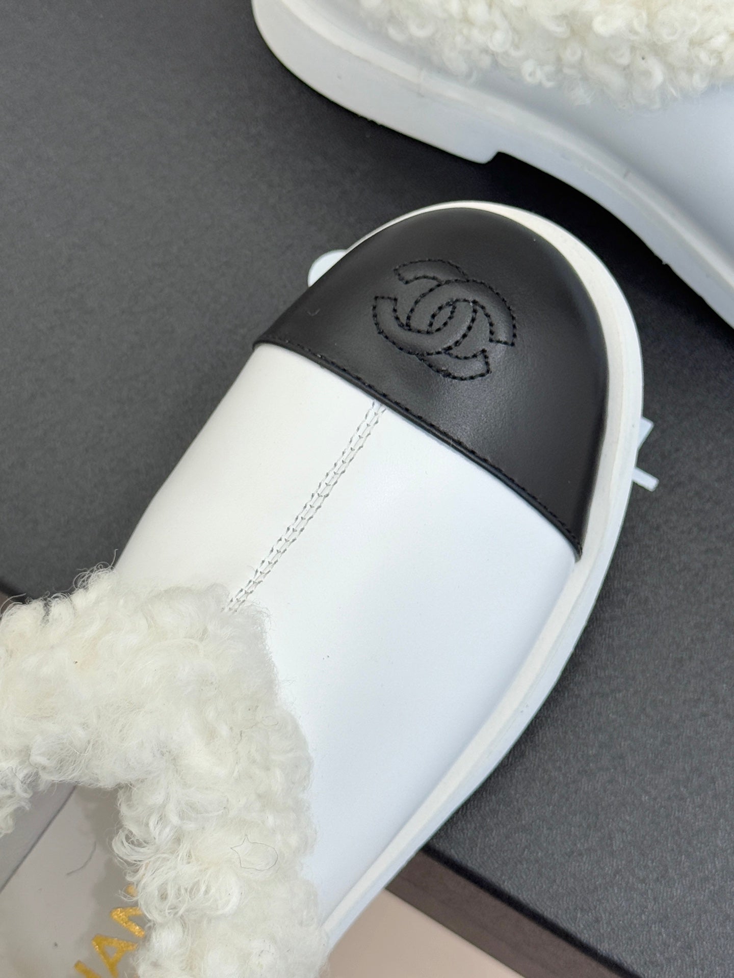 CC 25s Furry Snow Boots White Black Leather Wool 512065