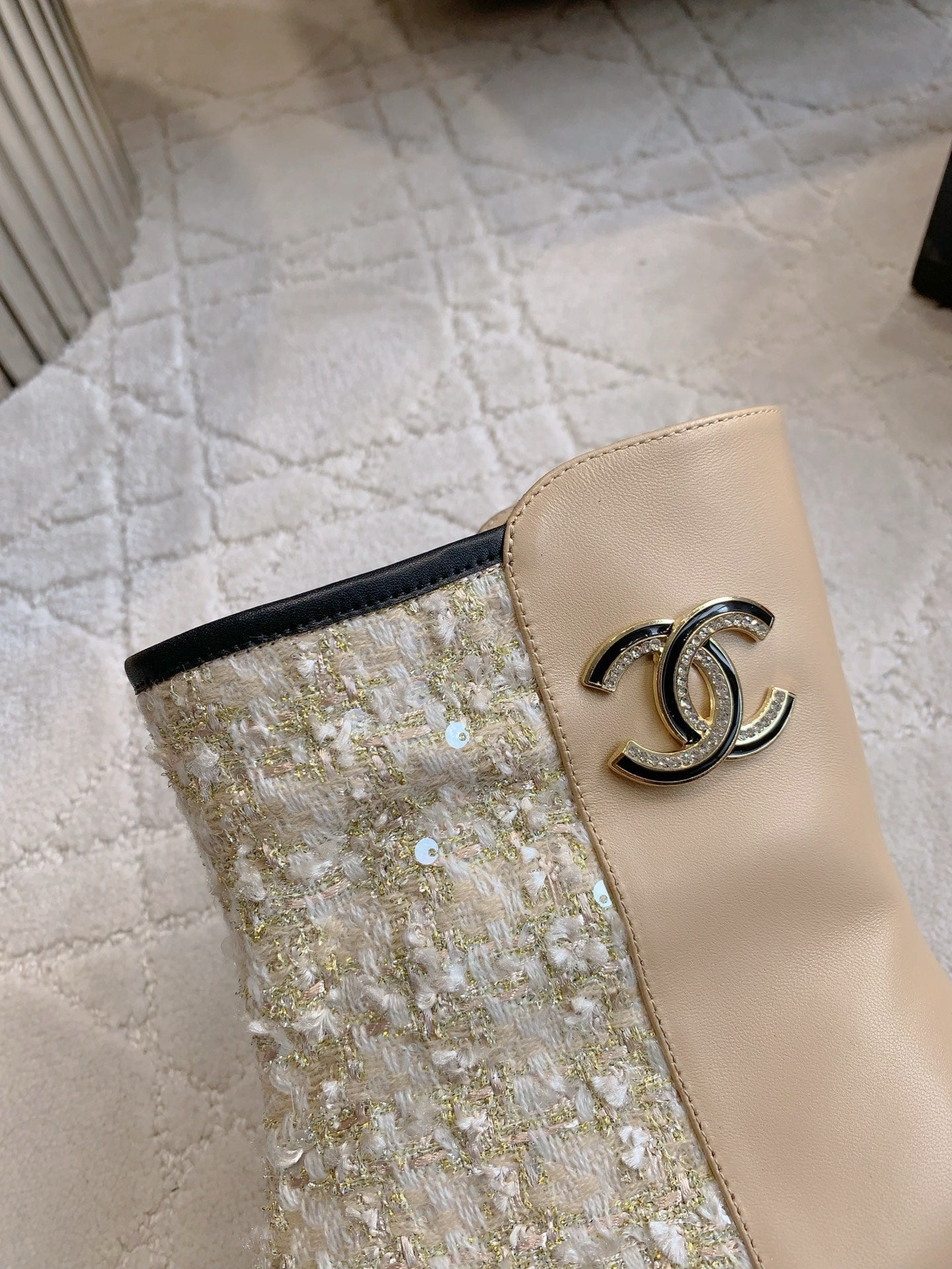 CC Ankle Boot 30mm Beige Cowhide Glitter 464577