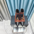 CC Ankle Boots Red Orange Tweed Fabric And Lambskin
