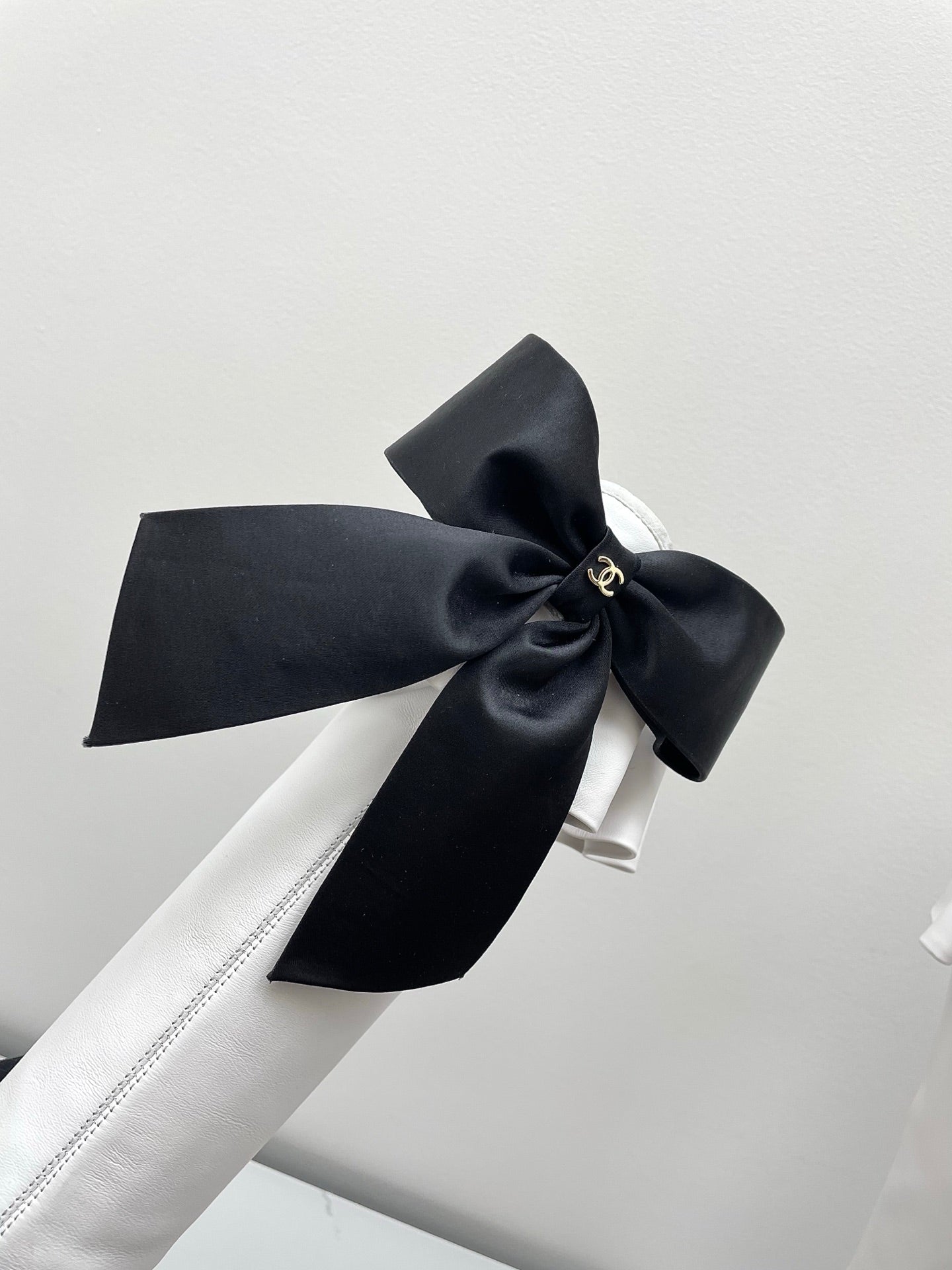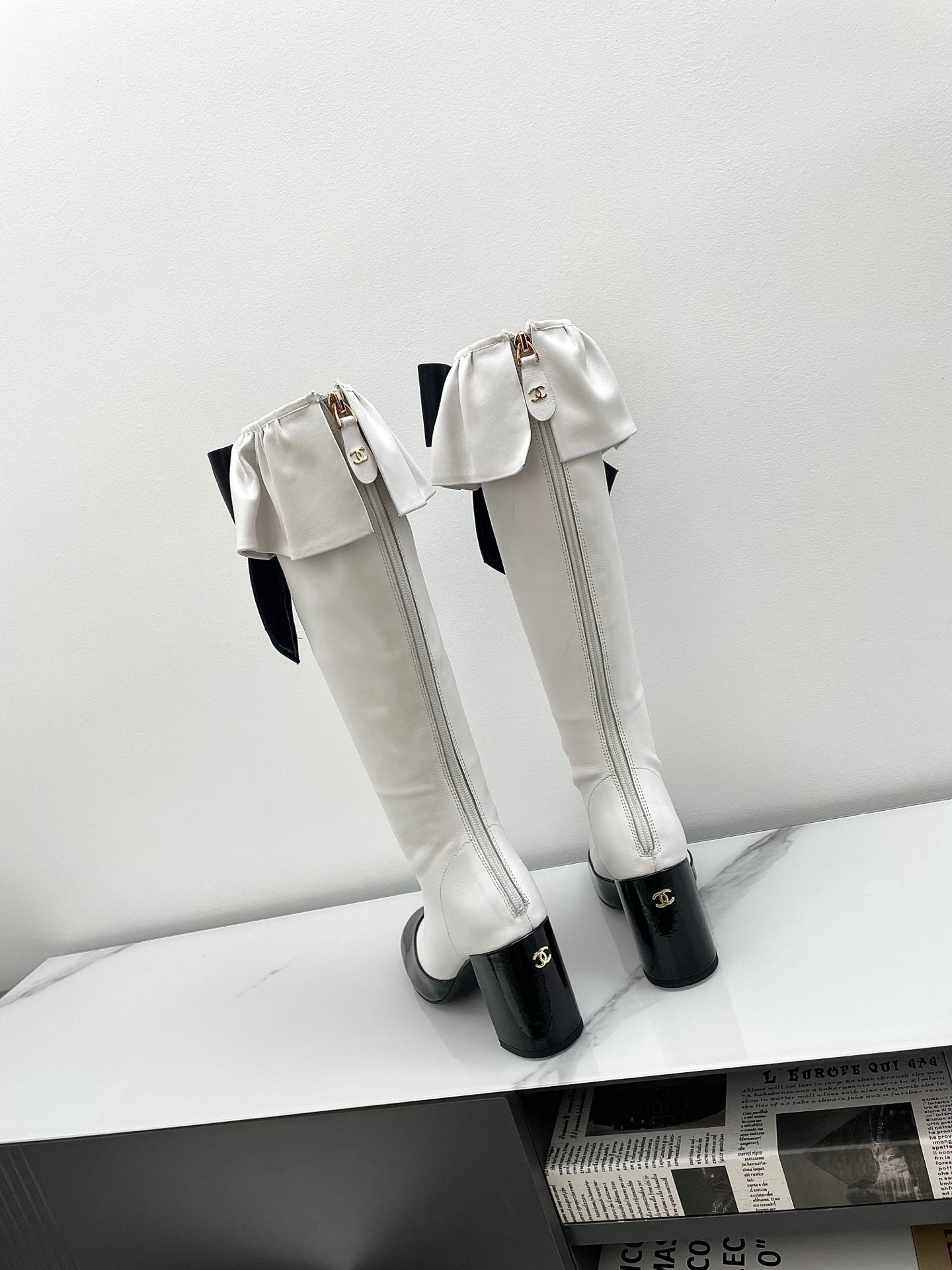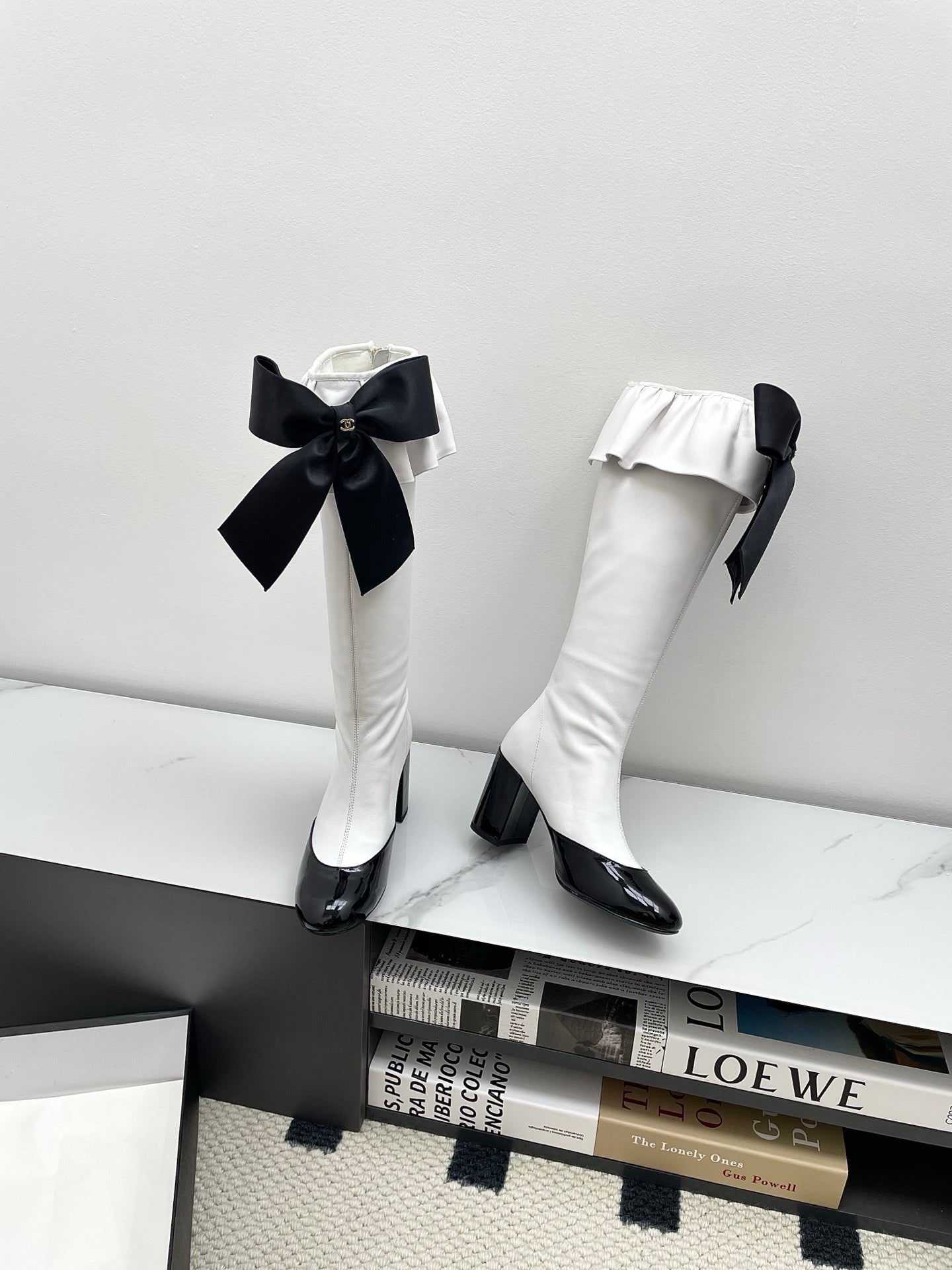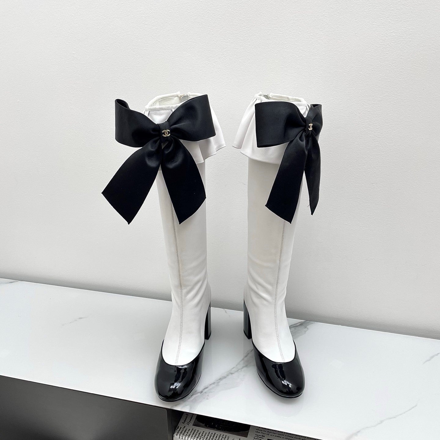 CC Big Bow Chunky Long Boots 80mm Black White Suede 427063