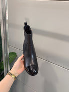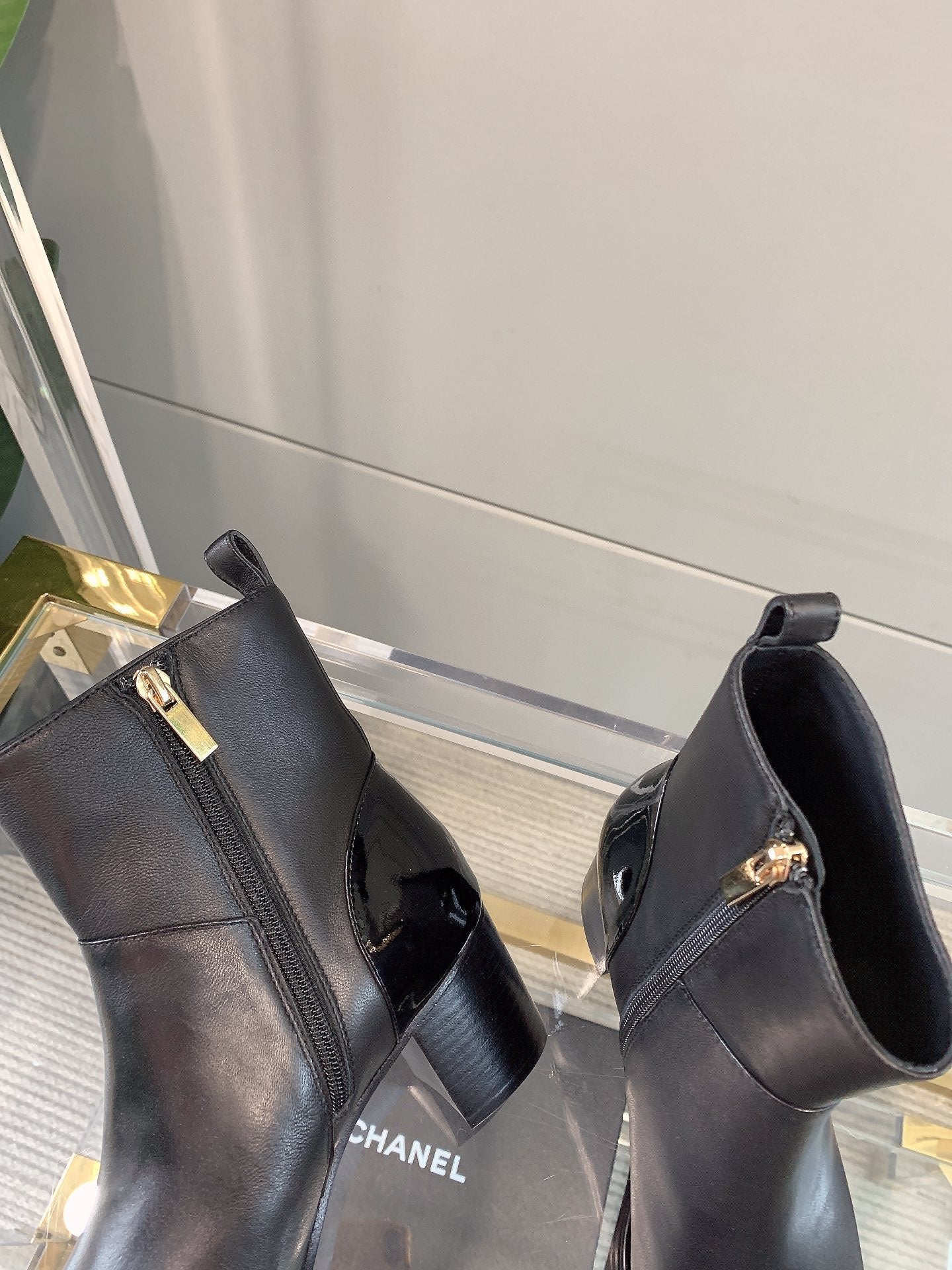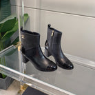 CC Block Heel Ankle Boots 60mm Black Patent Leather Sheeepskin 464554