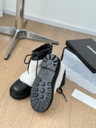 CC CHUNKY BOOTS IN WHITE SMOOTH FLEECE AND BLACK CALFSKIN