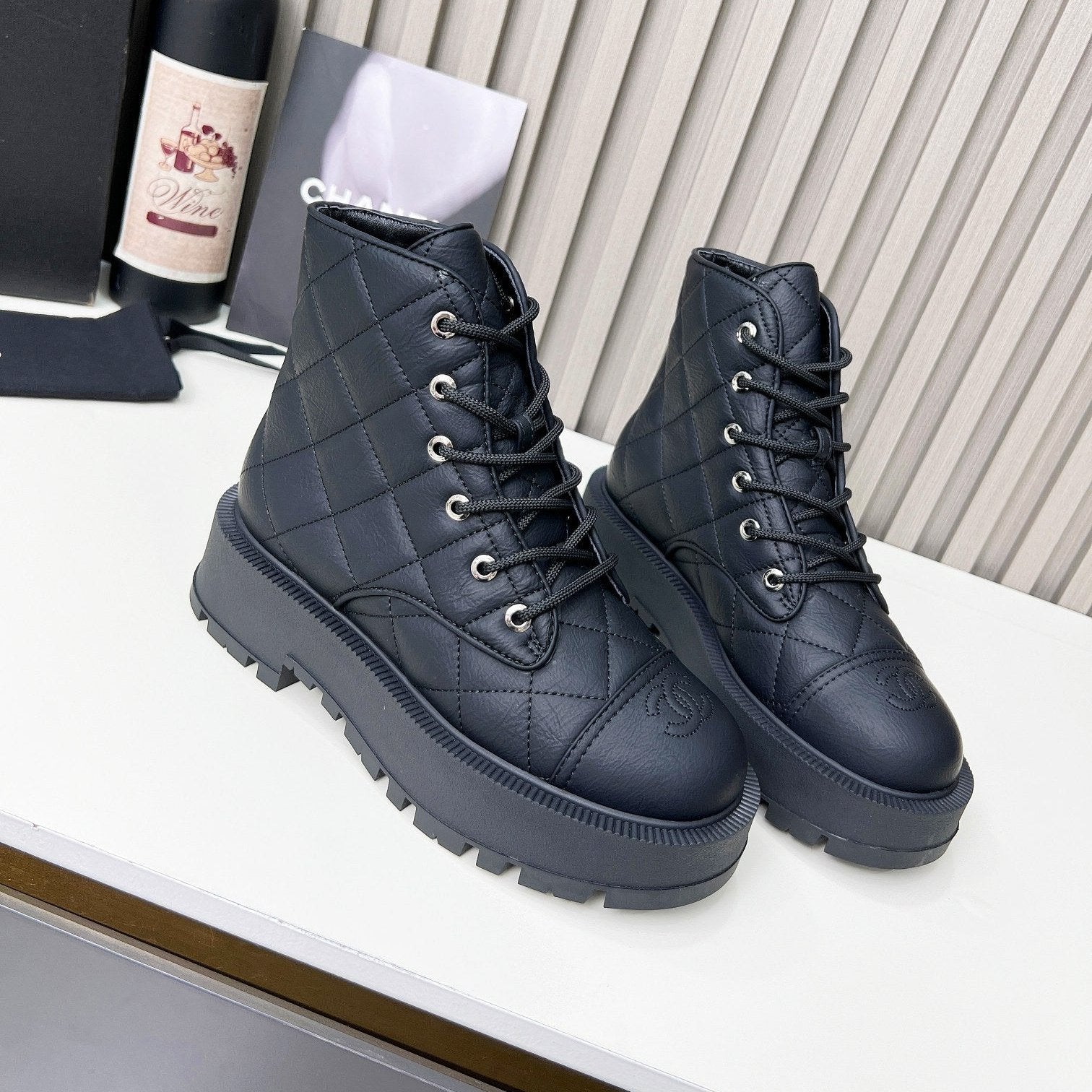 CC Combat Boots In Black Quilted Lambskin 944578