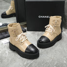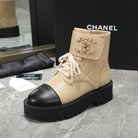 CC Interlocking Logo Combat Boots Black Beige Quilted Lambskin 432653