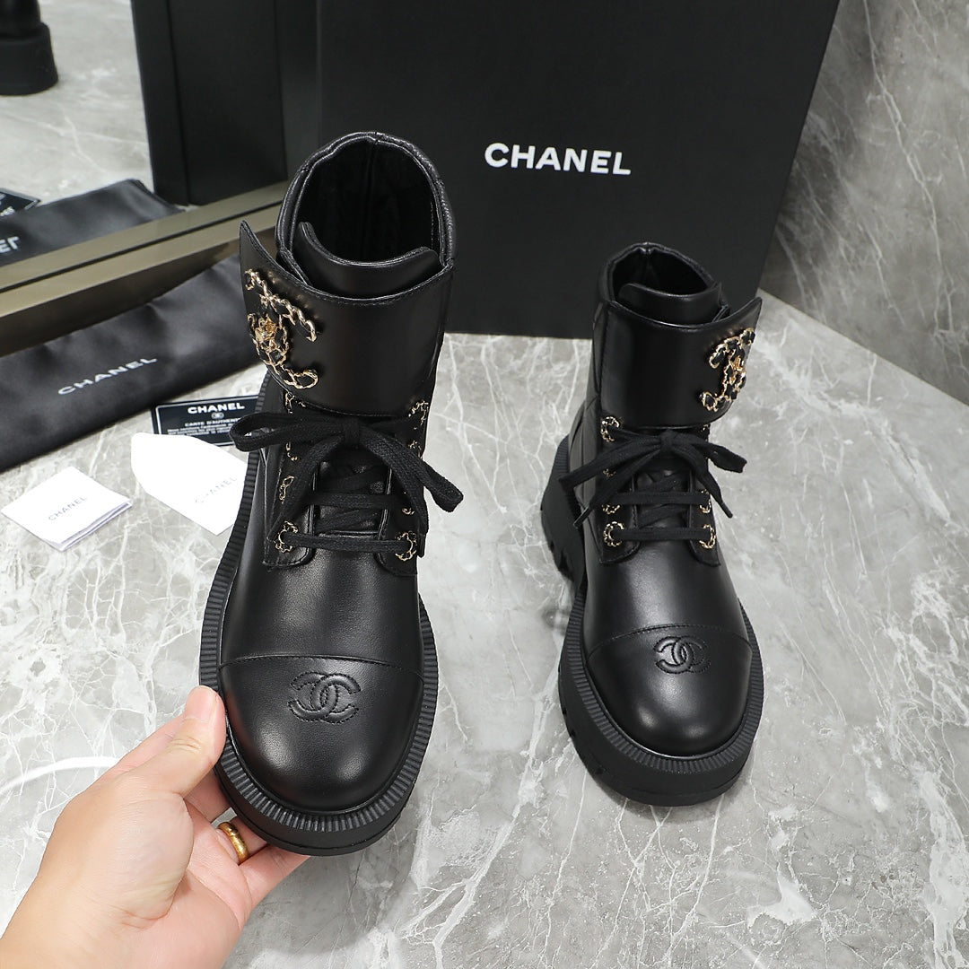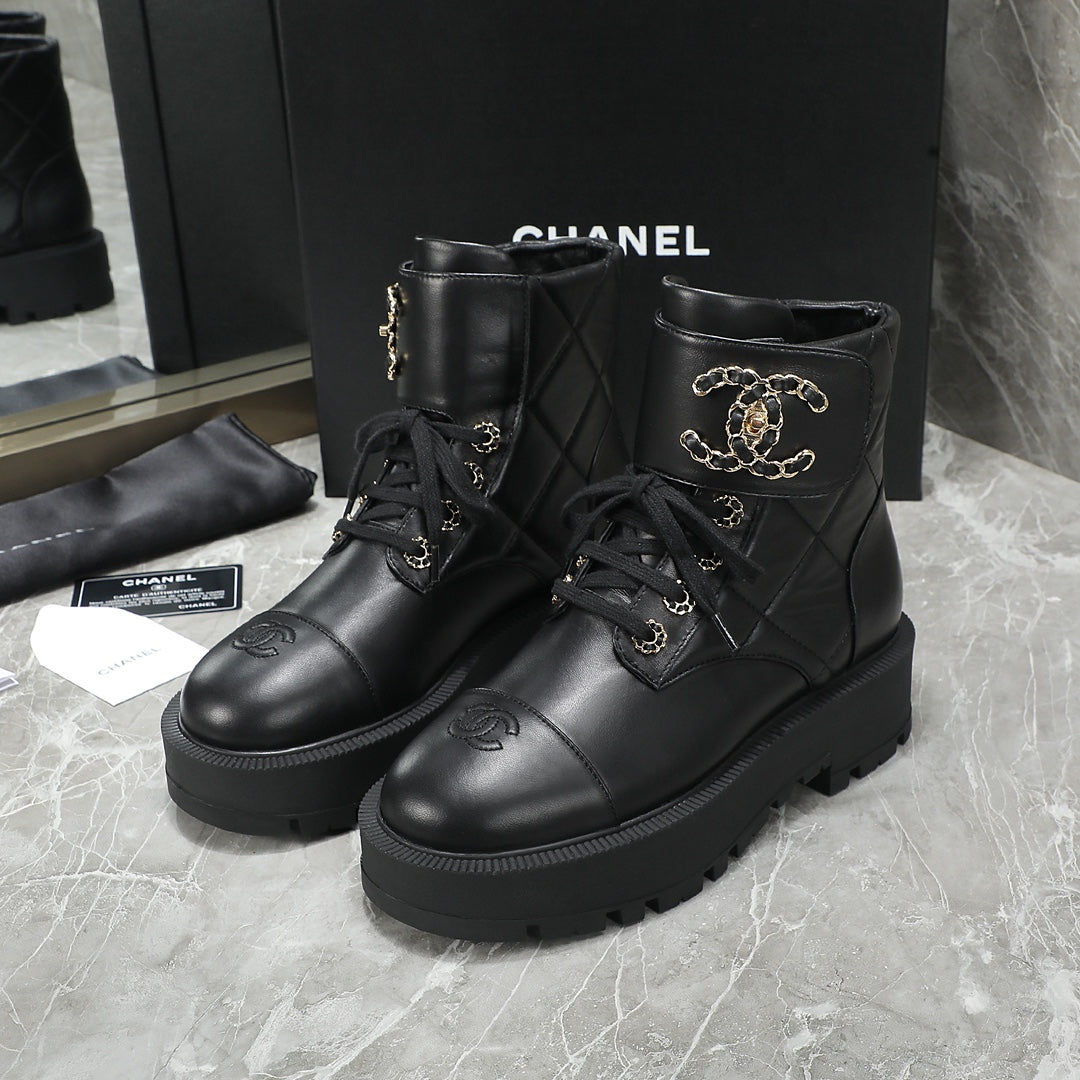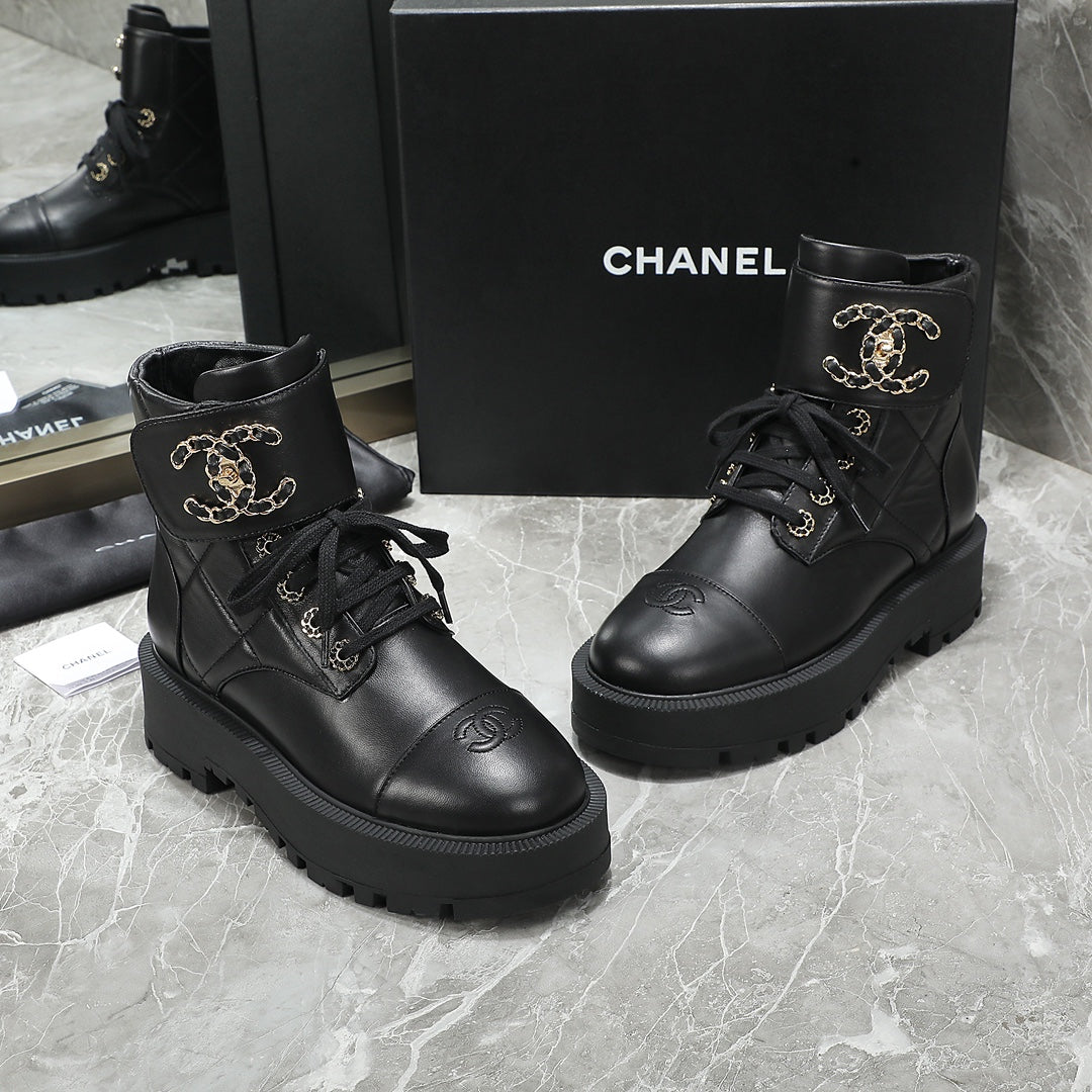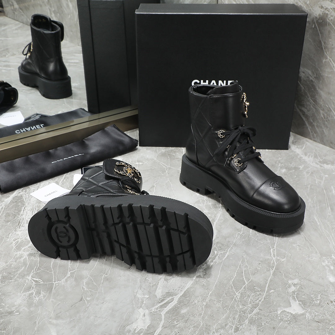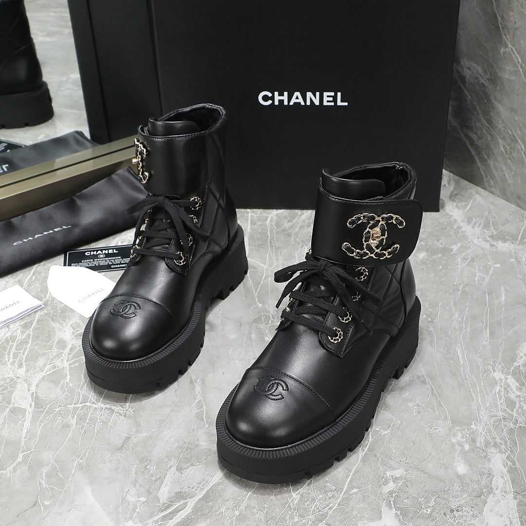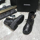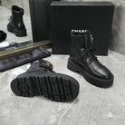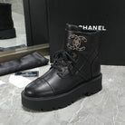 CC Interlocking Logo Combat Boots Full Black Quilted Lambskin 432654