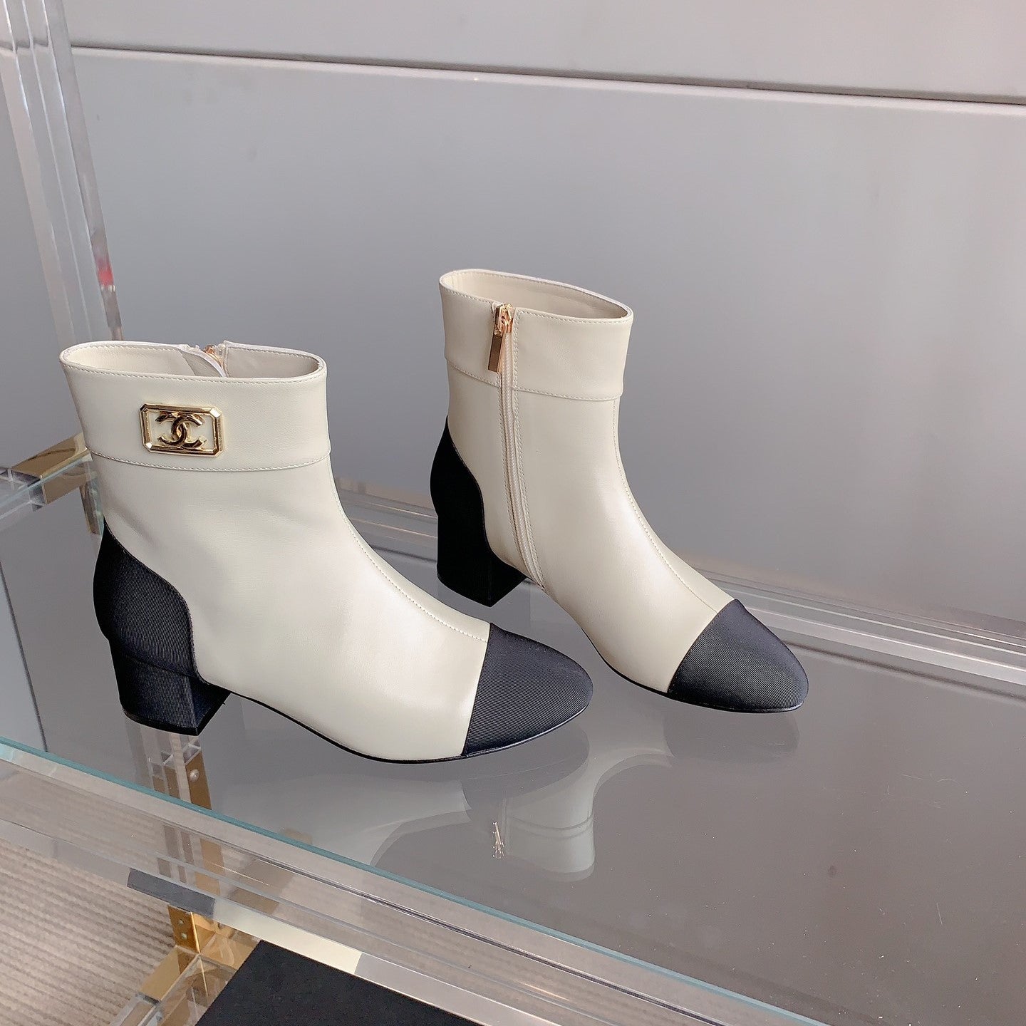 CC Low-Cut Logo Ankle Boots 50mm Black White Sheepskin Frabic 464559