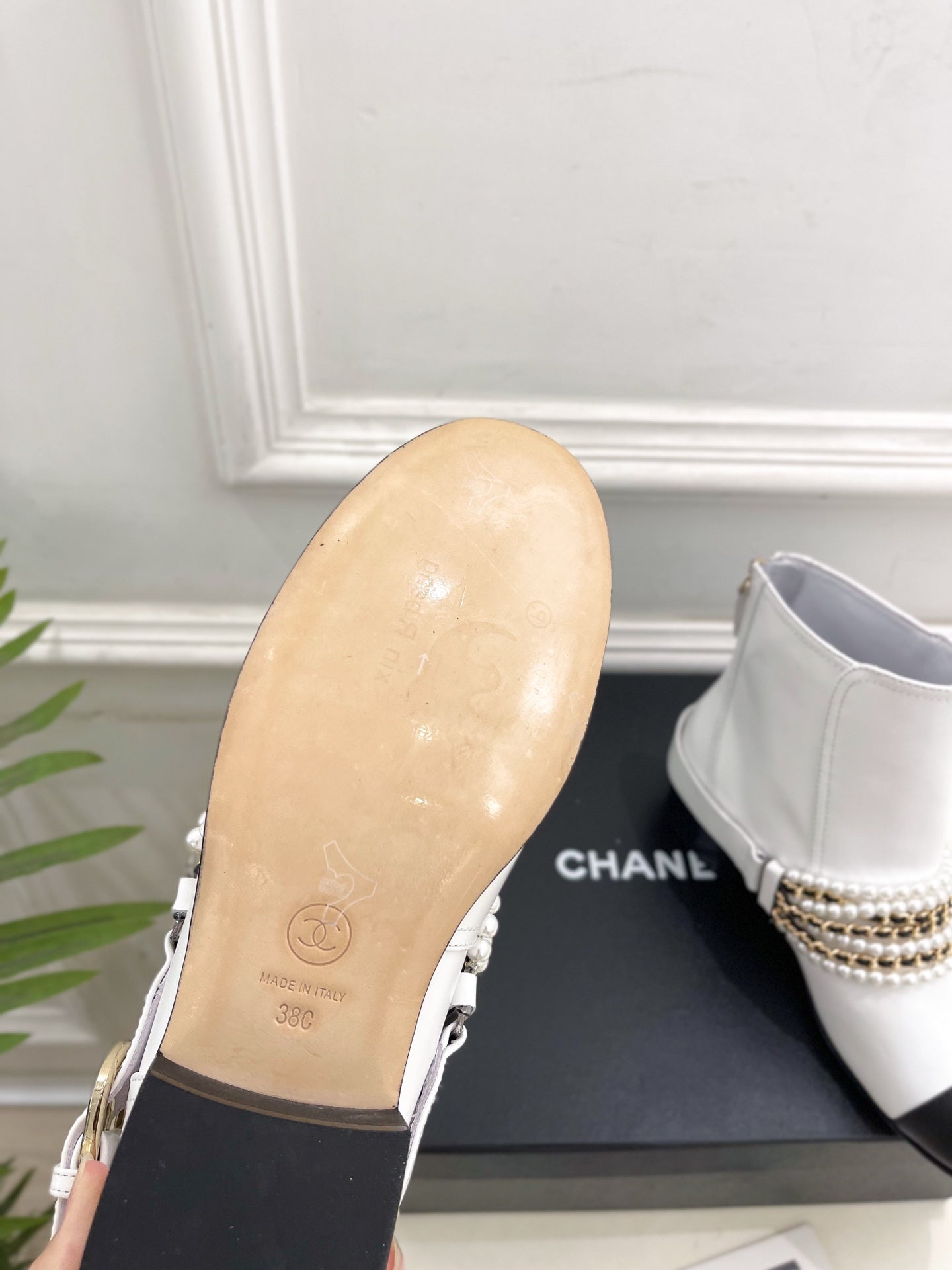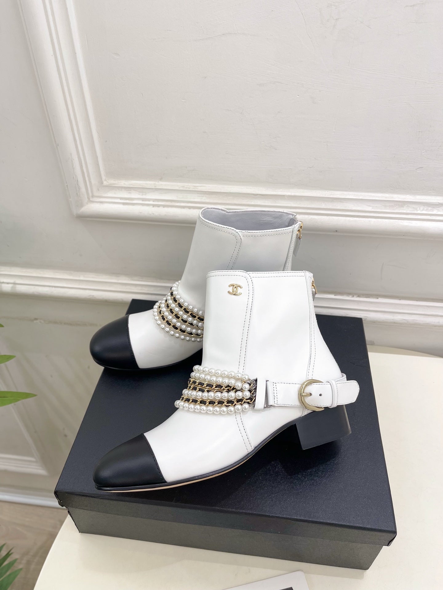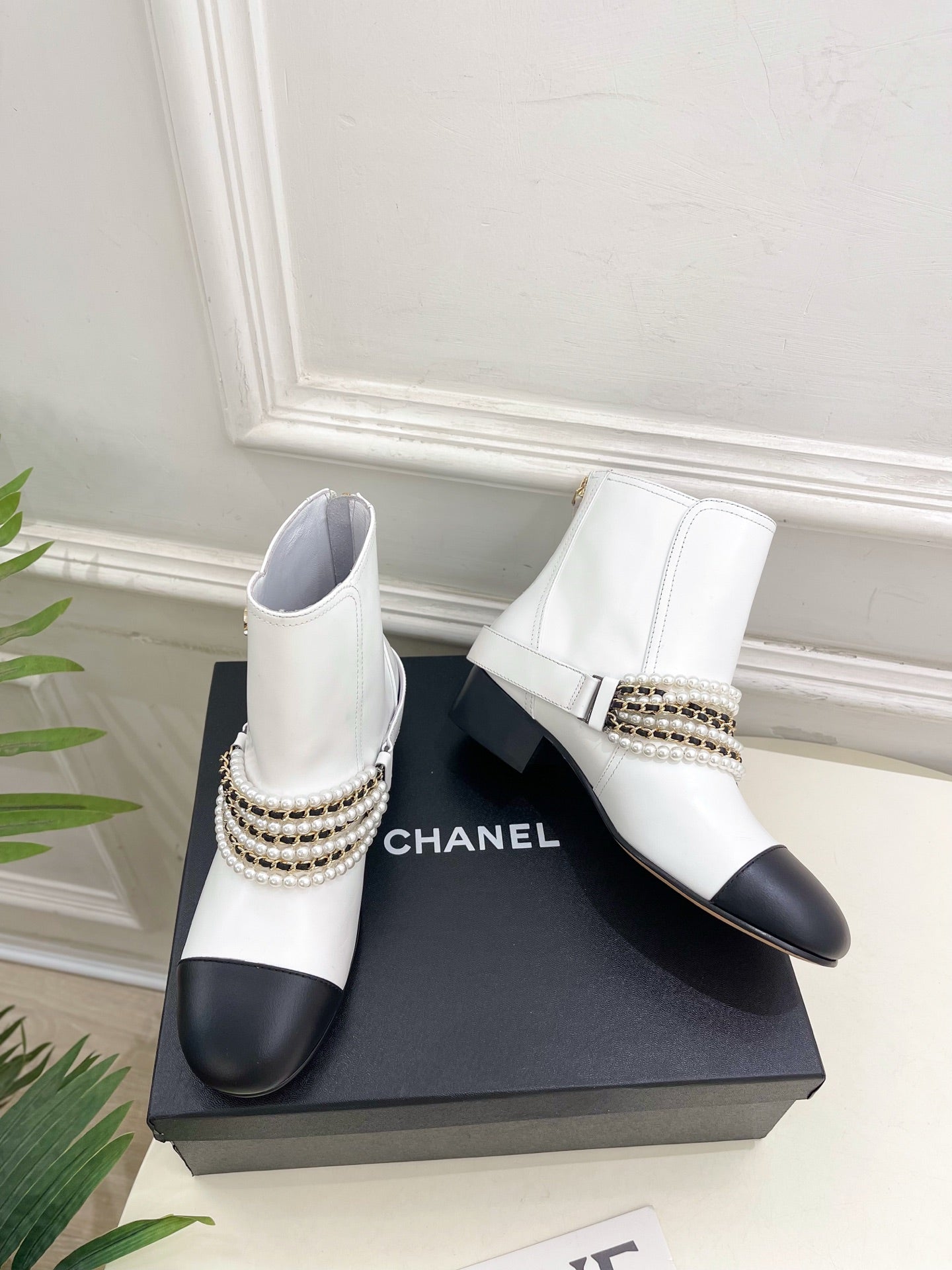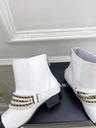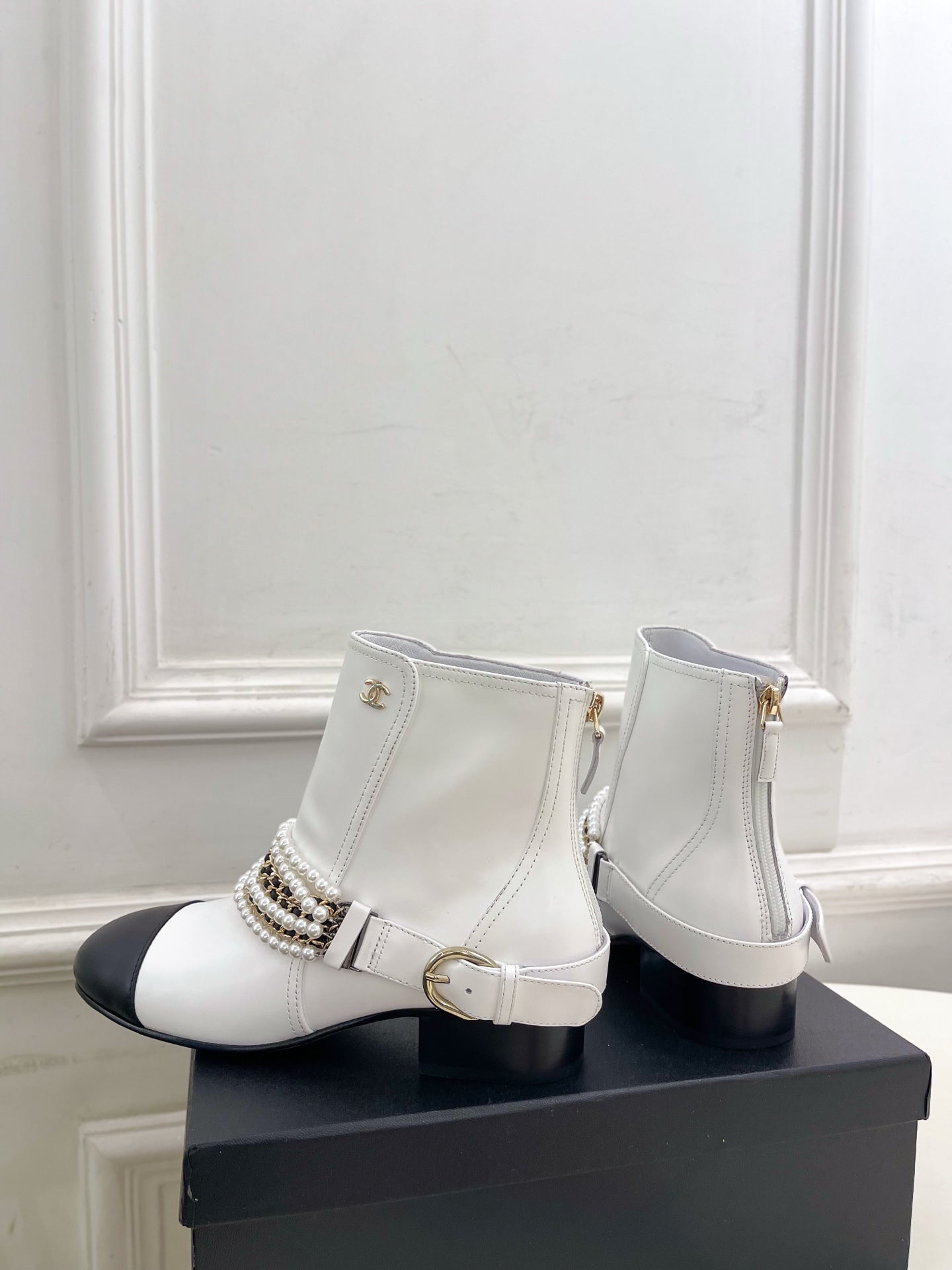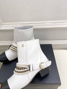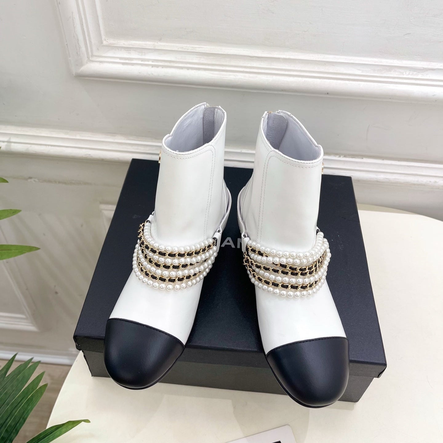 CC Pearl Chain Ankle Boots Booties 35mm Black White Lambskin 425464