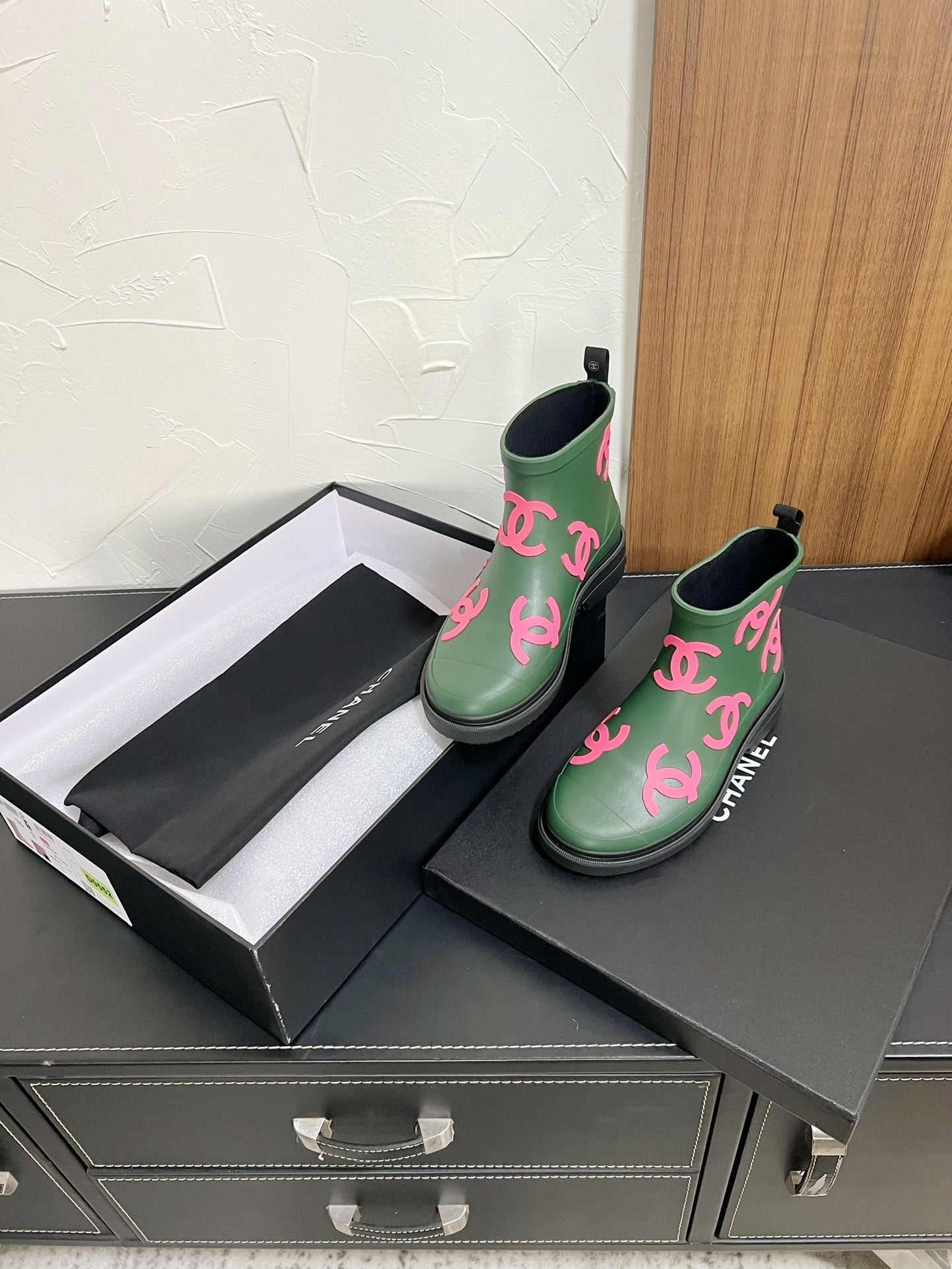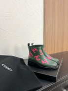 CC Rain boots In Green With Pink Logo Natural Rubber 949790