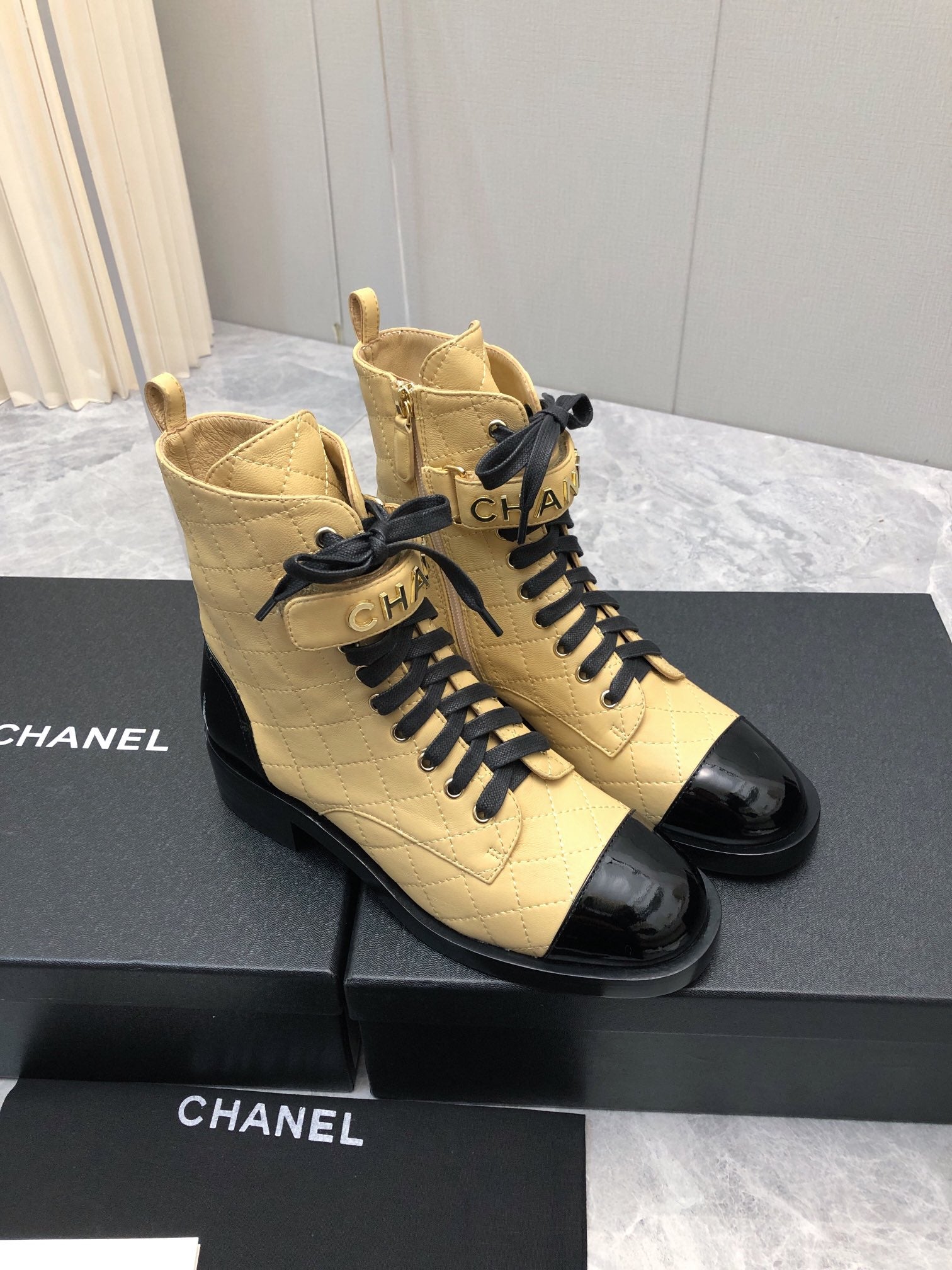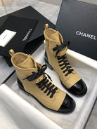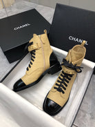 CC Short Boots 45mm In Light Yellow Mix Black Quilted Lambskin And Glossy Cowhide 950039