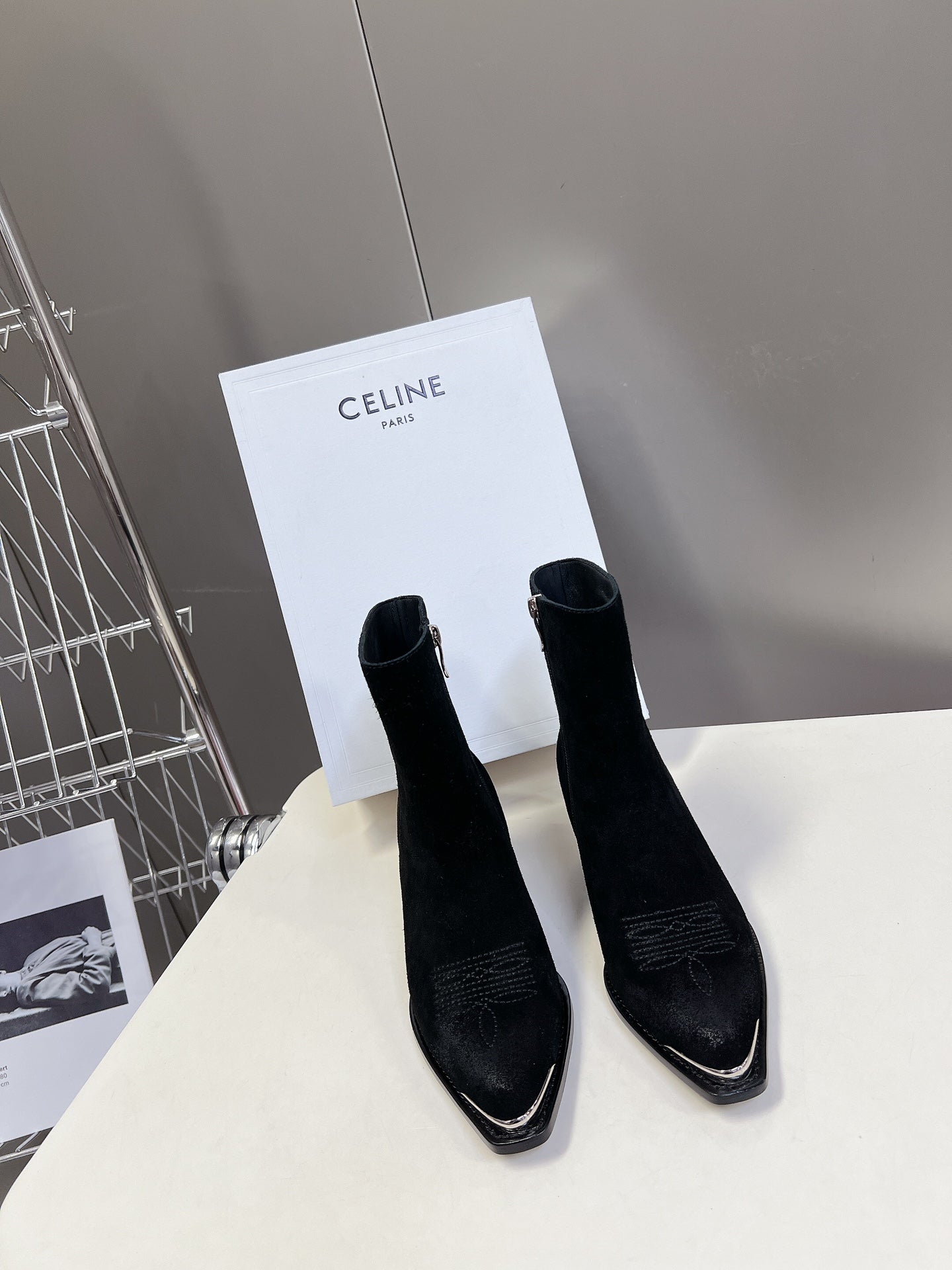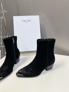 CELINE 25 Cowboy Boots Black Suede 434418