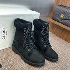 CELINE Ankle Boots Black Suede Lambswool 433387