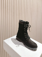 CELINE Kurt Lace-Up Mid Boot Black Nubuck Calfskin 452785
