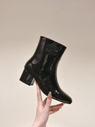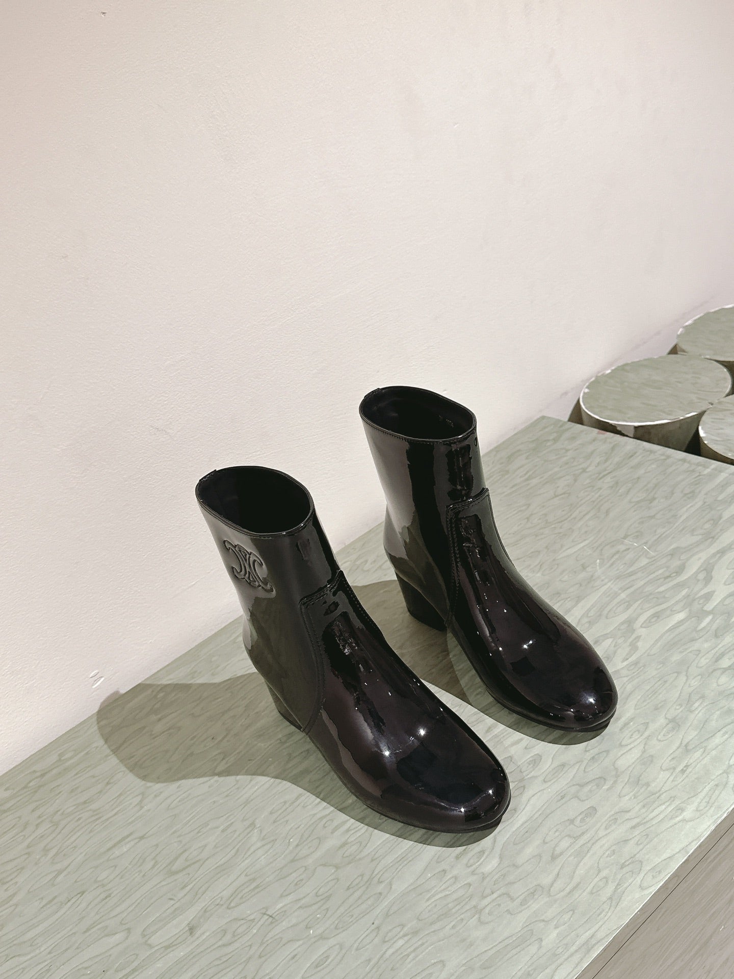 CELINE Les Bottes Triomphe Zipped Boot Black Patent Calfskin 452697