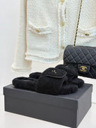 Chanel 25 Buckle Flip-up Thick-soled Slippers Black Wool 465380