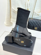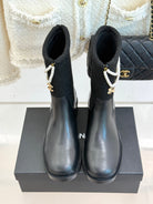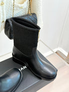 Chanel 25 Four-Leaf Clover Pearls Double C Boots Black Woven Sheepskin 465405