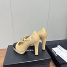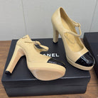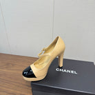 Chanel 25 High Heel Pump Beige Black Sheepskin 465593