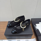 Chanel 25 Mary Jane Ankle Chain Ballet Flat black Suede Cowhide 465597