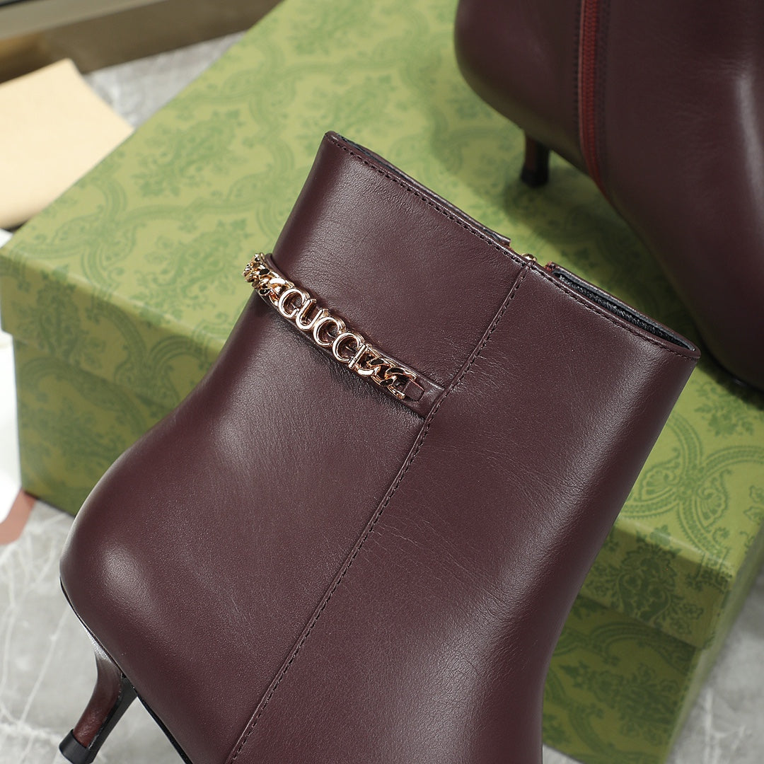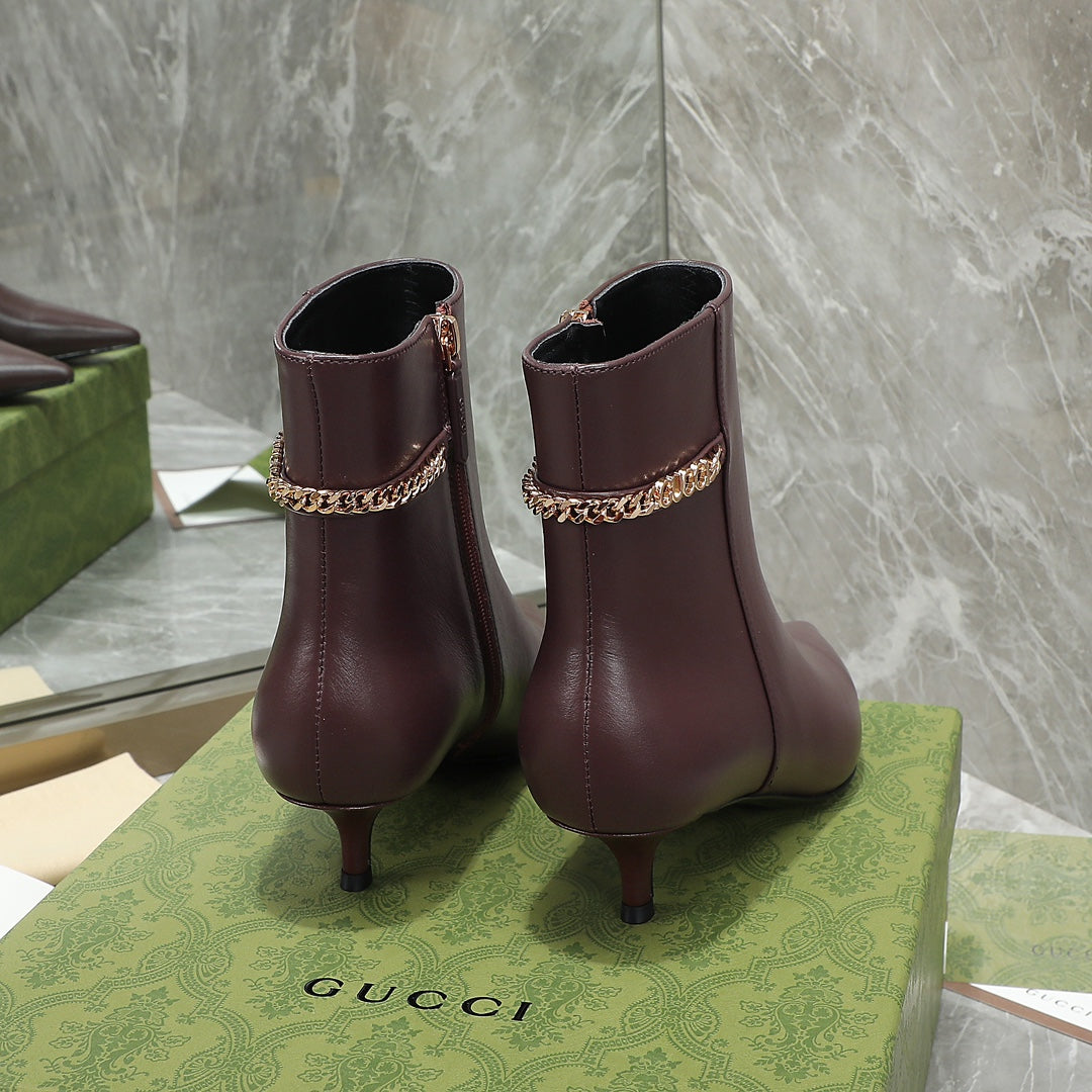 GG Ankle Boots with Chain 45mm Chocolate Calfskin 432684