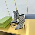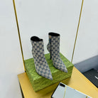 GG SIGNORIA ANKLE BOOT IN PALE GRAY MONOGRAM CANVAS