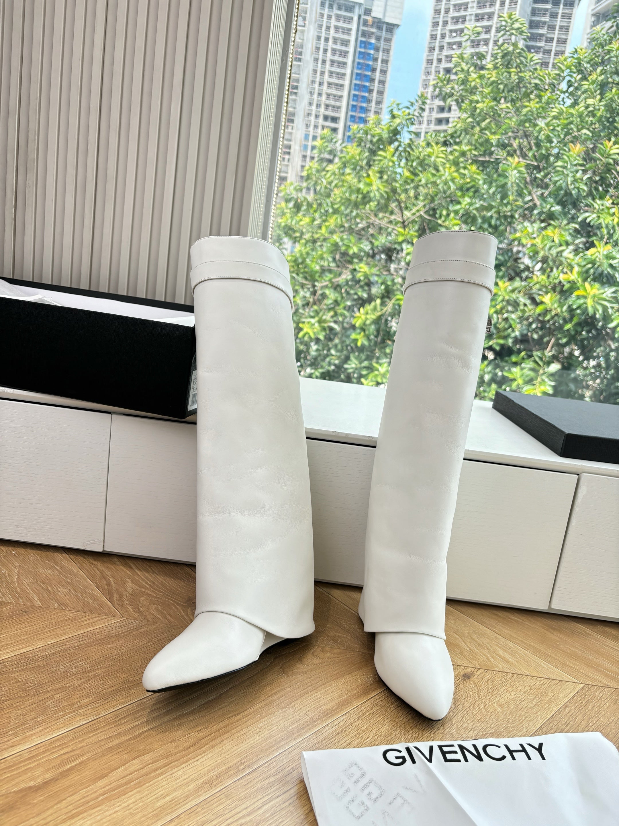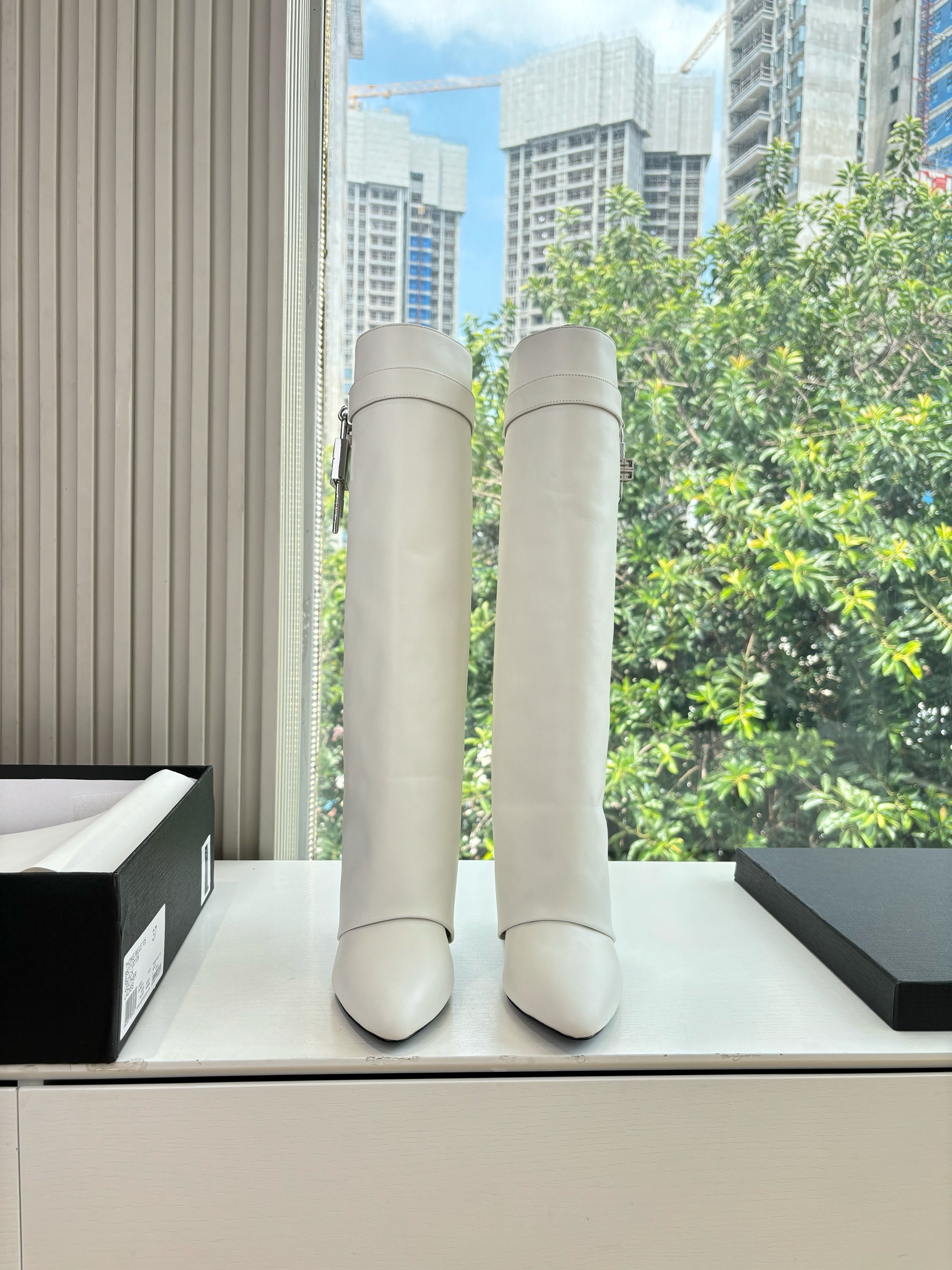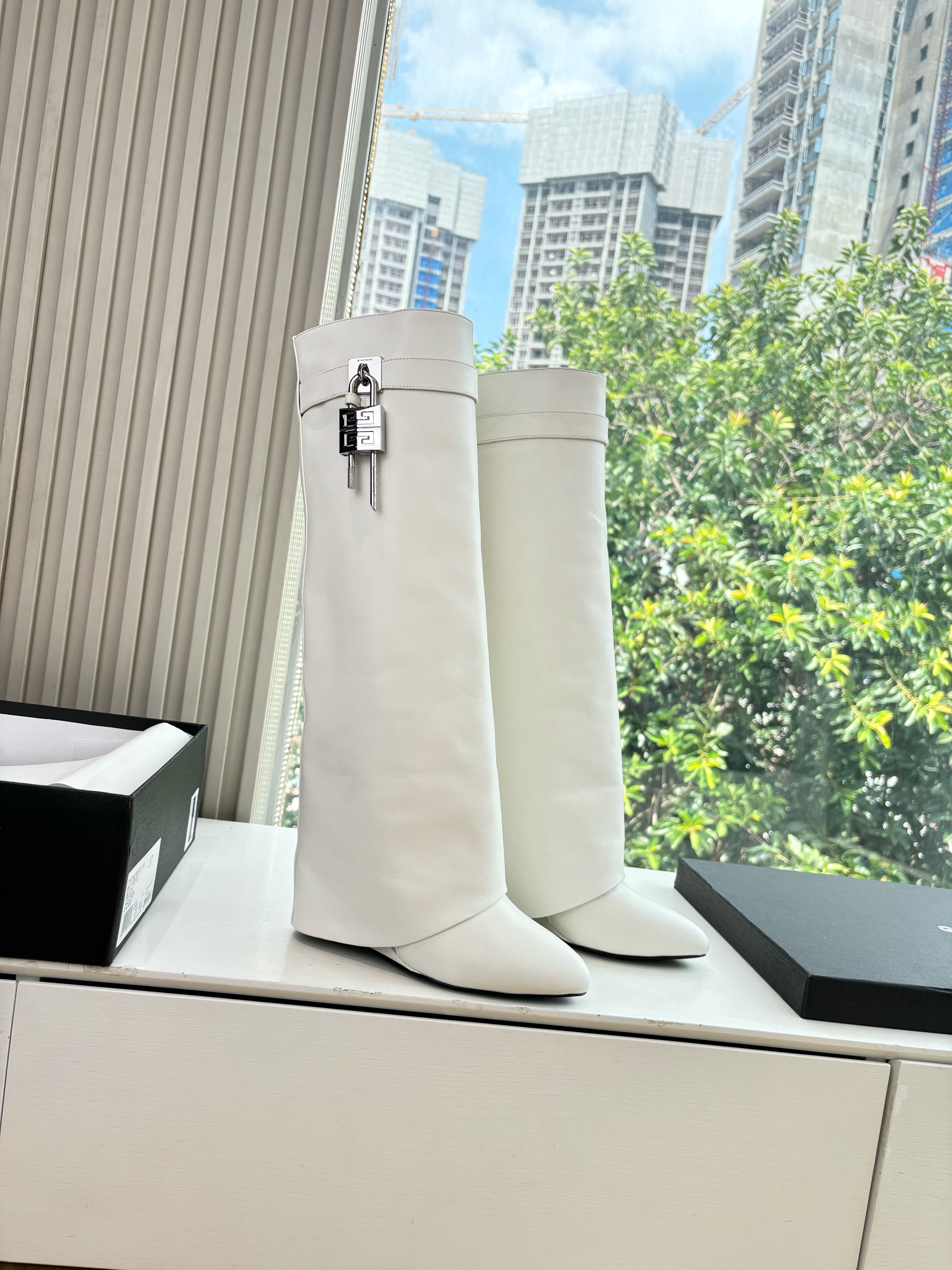 Givenchy FW25 Shark-Lock Knee-High Boots White Cowhide Sliver HW 507188