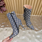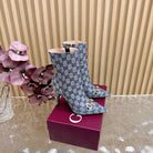 Gucci 2025 Thick-heeled Square-toed Ankle Boots Blue Sheepskin Fabric 498065