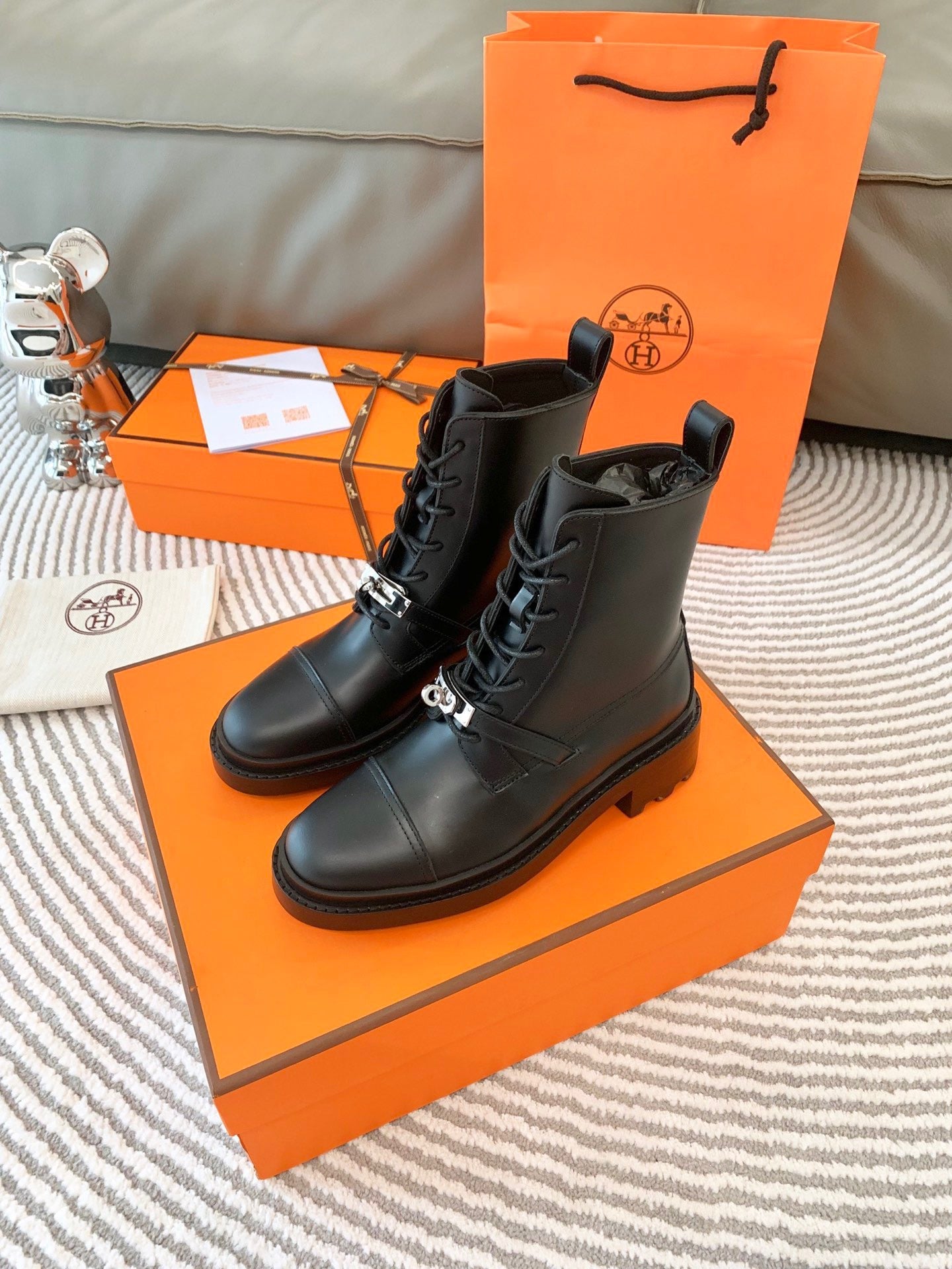 HM Funk Motorcycle Ankle Boots with Kelly Buckle Black Cafskin