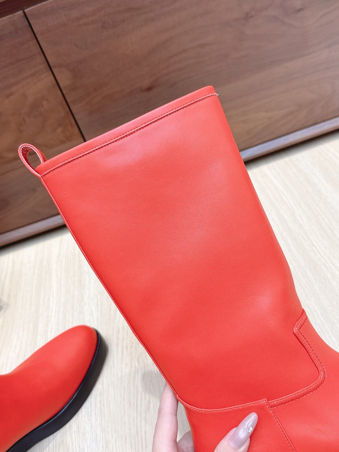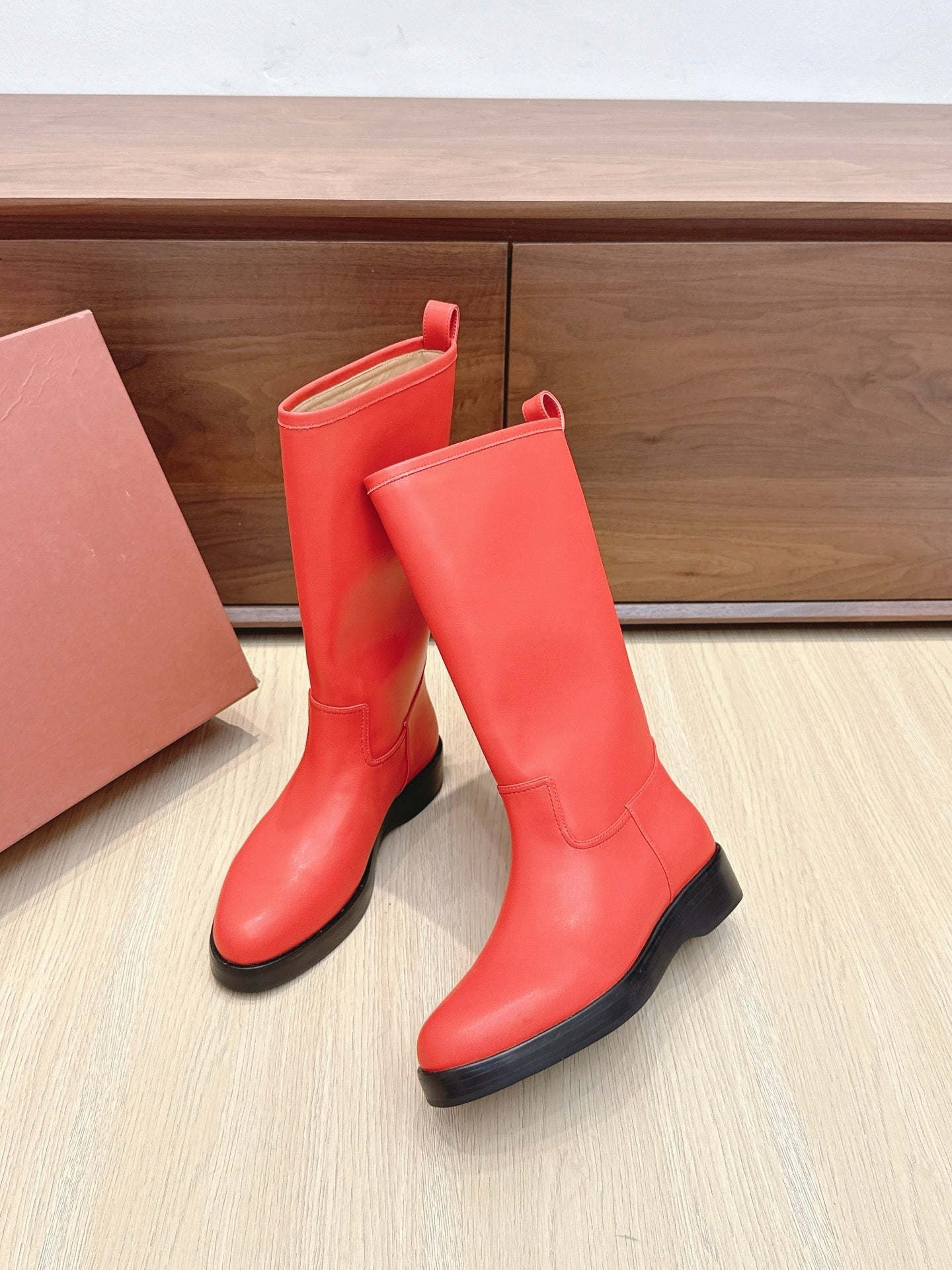 LP Mid-Calf Boots 20mm Red Cowhide Sheepskin 447743