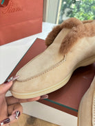 LP Open Walk Ankle Boot Light Beige Brown Fur Suede 507421