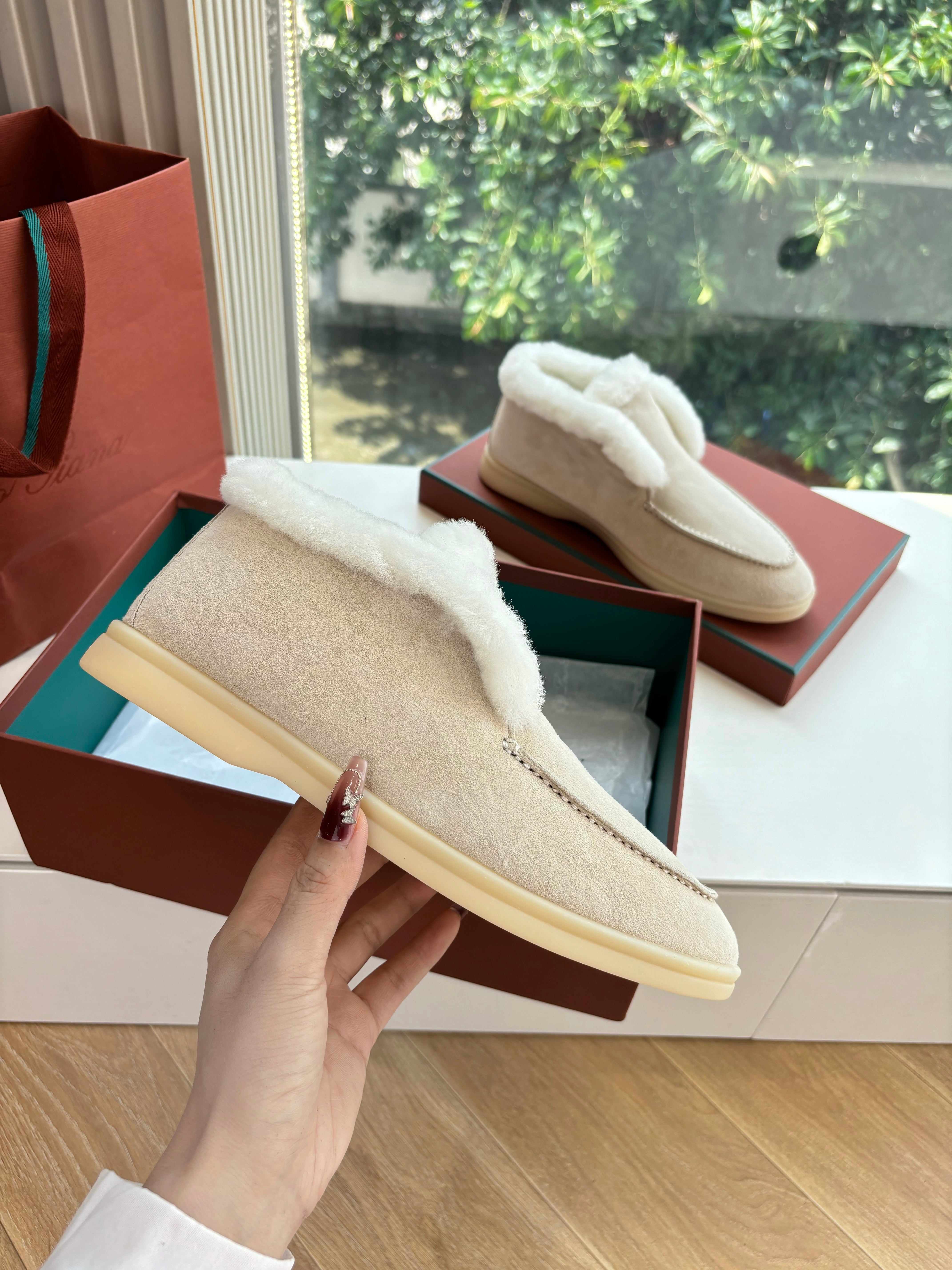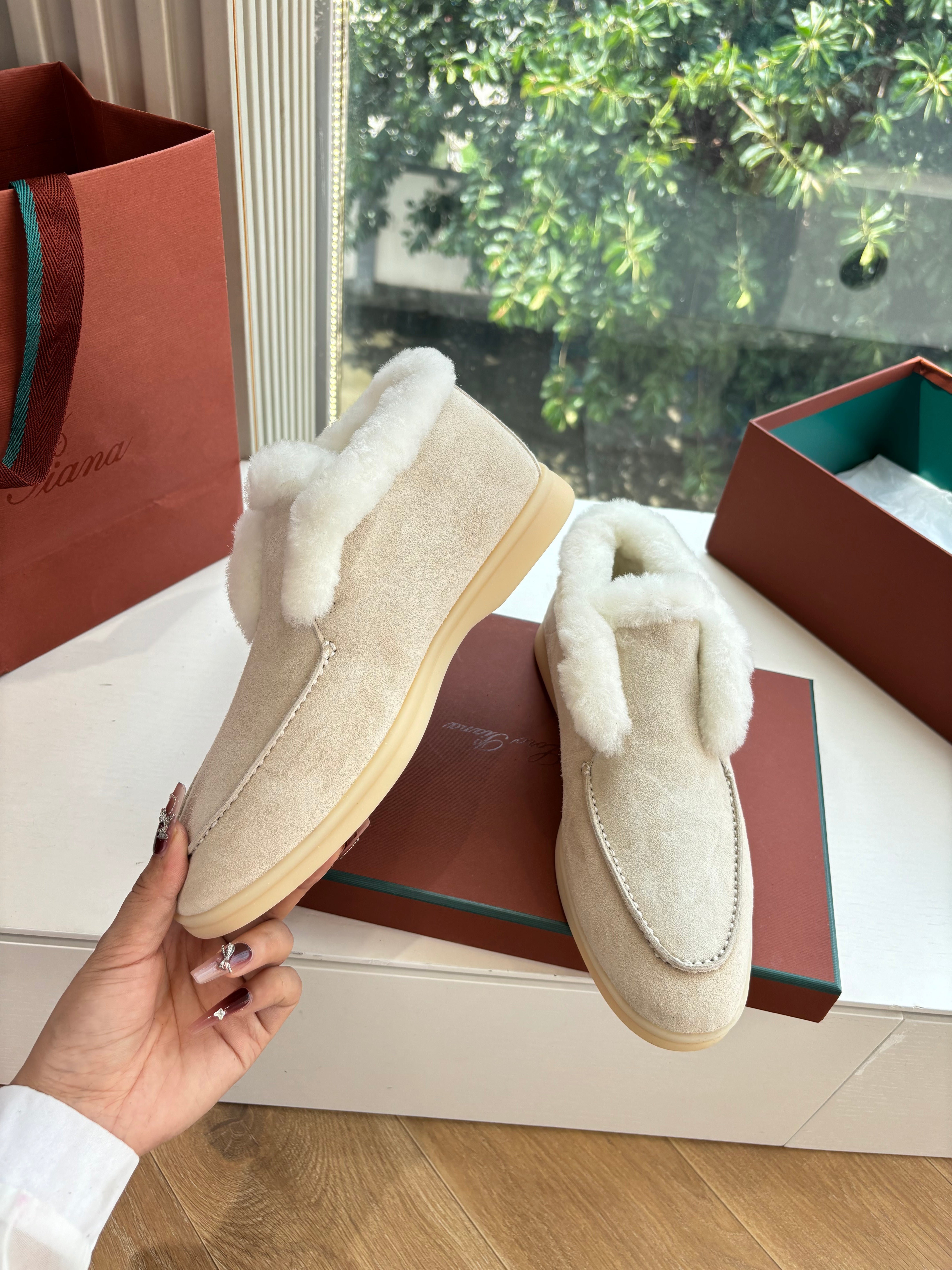 LP Open Walk Ankle Boot Light Beige White Fur Suede 507420