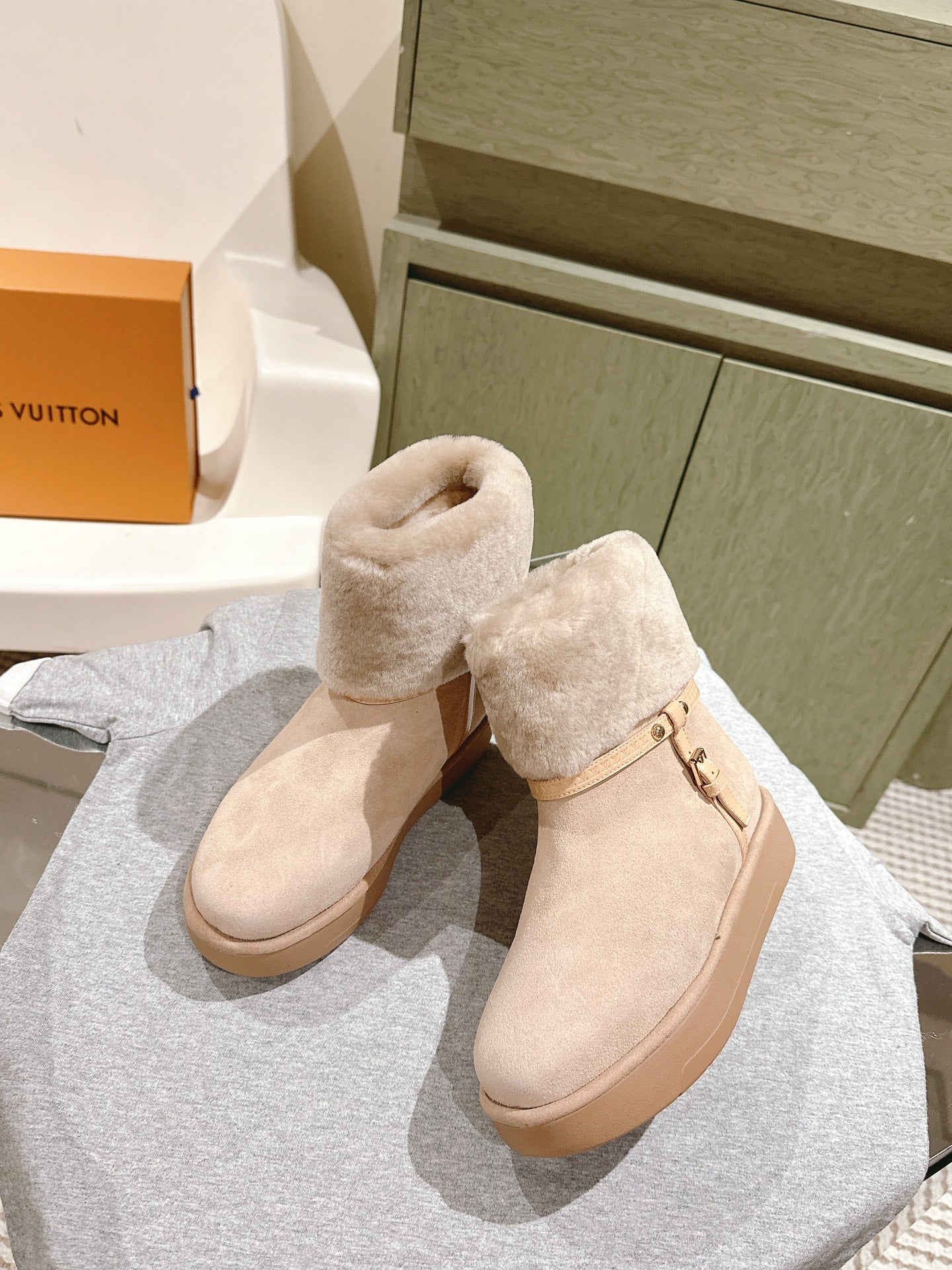 LV Aspen Platform Ankle Boot Beige Suede Cowhide/Shearling 450429