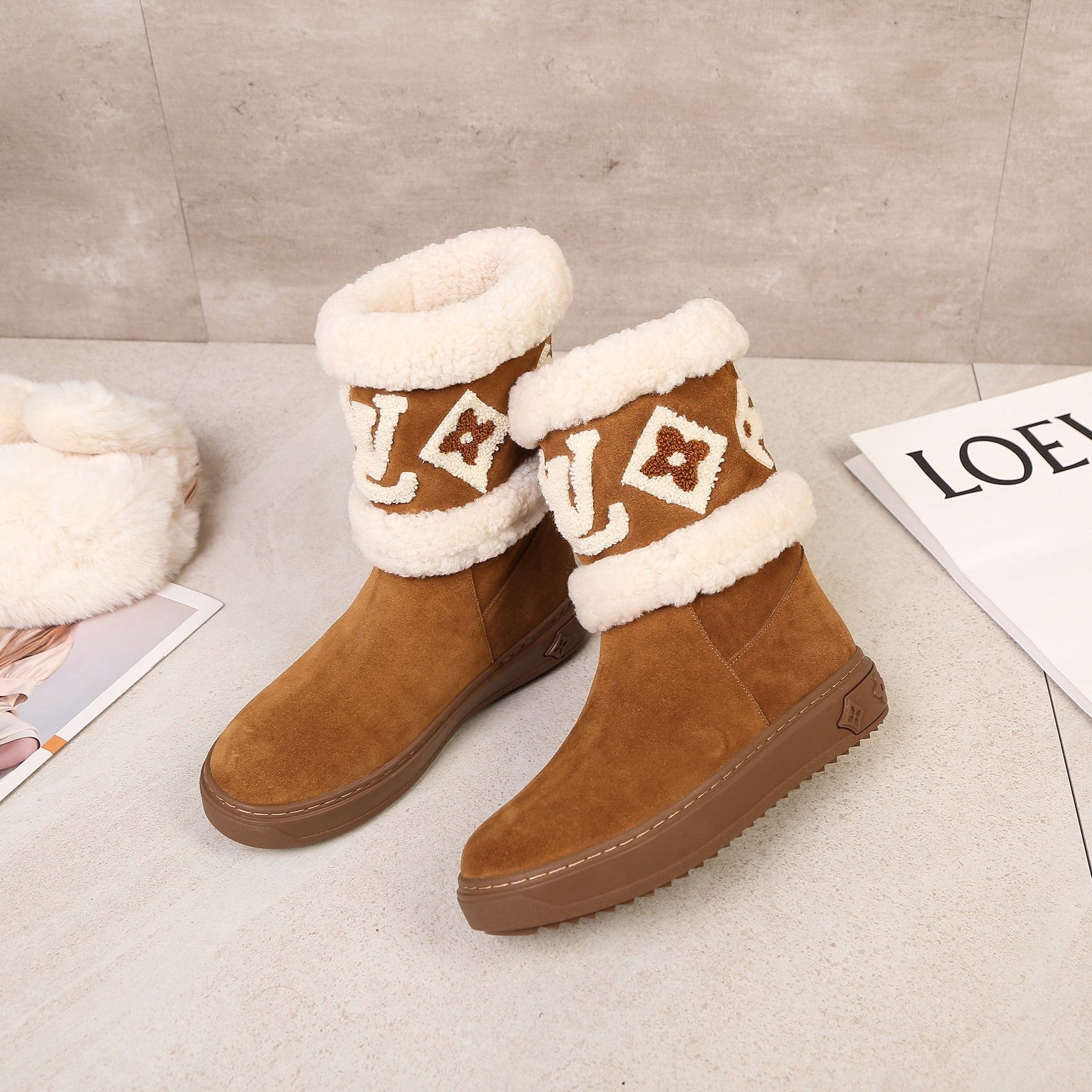 LV Snowdrop Line Ankle Boots Brown White Suede Wool 454719