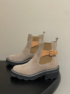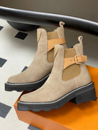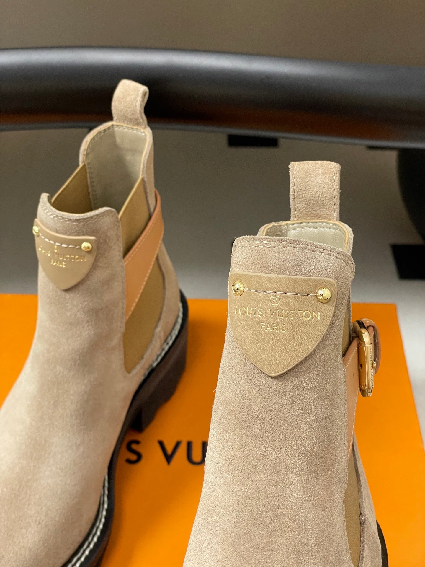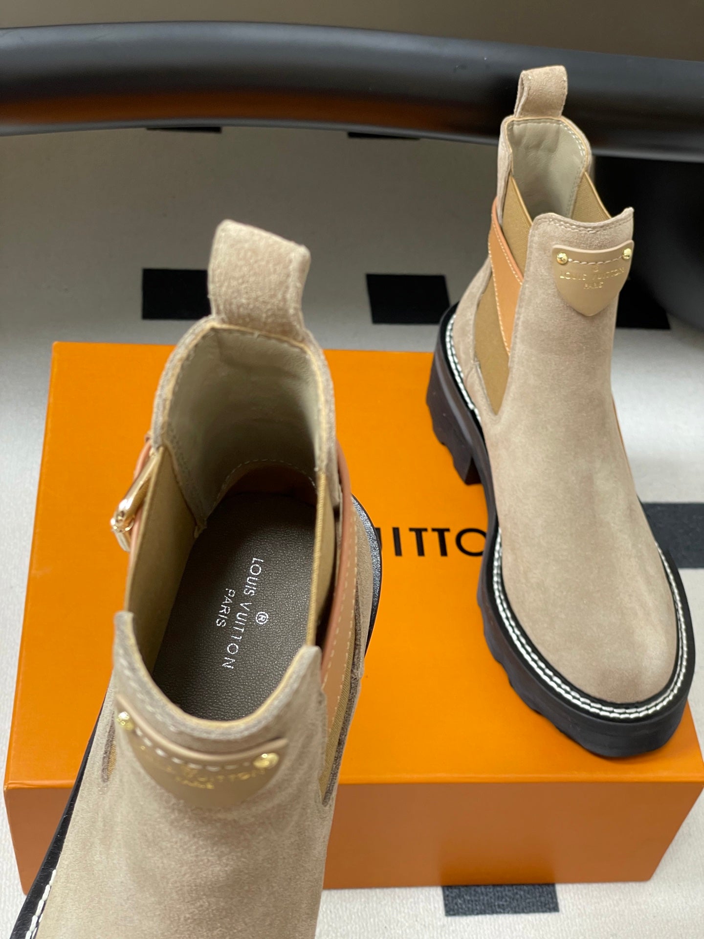 LV Triangle Logo Beaubourg Ankle Boots 40mm Beige Suede & Rubber 423367