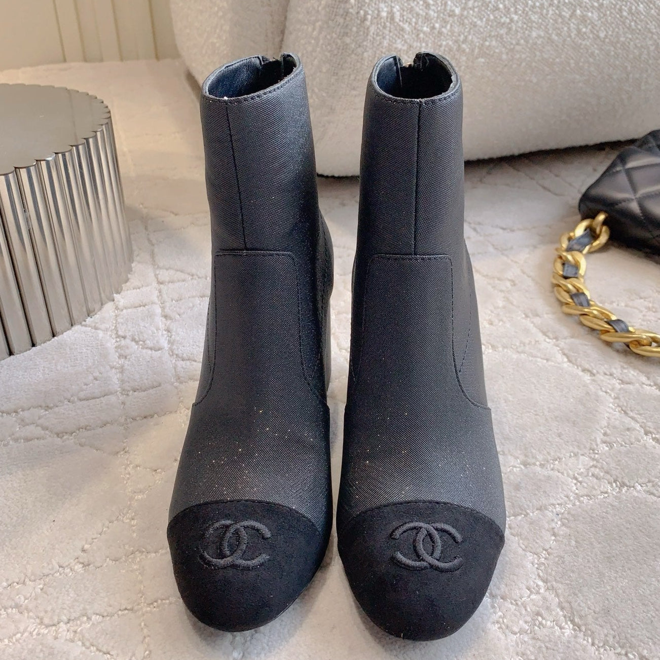 CC 25 Short Boot Black Denim Fabric Calfskin 515267