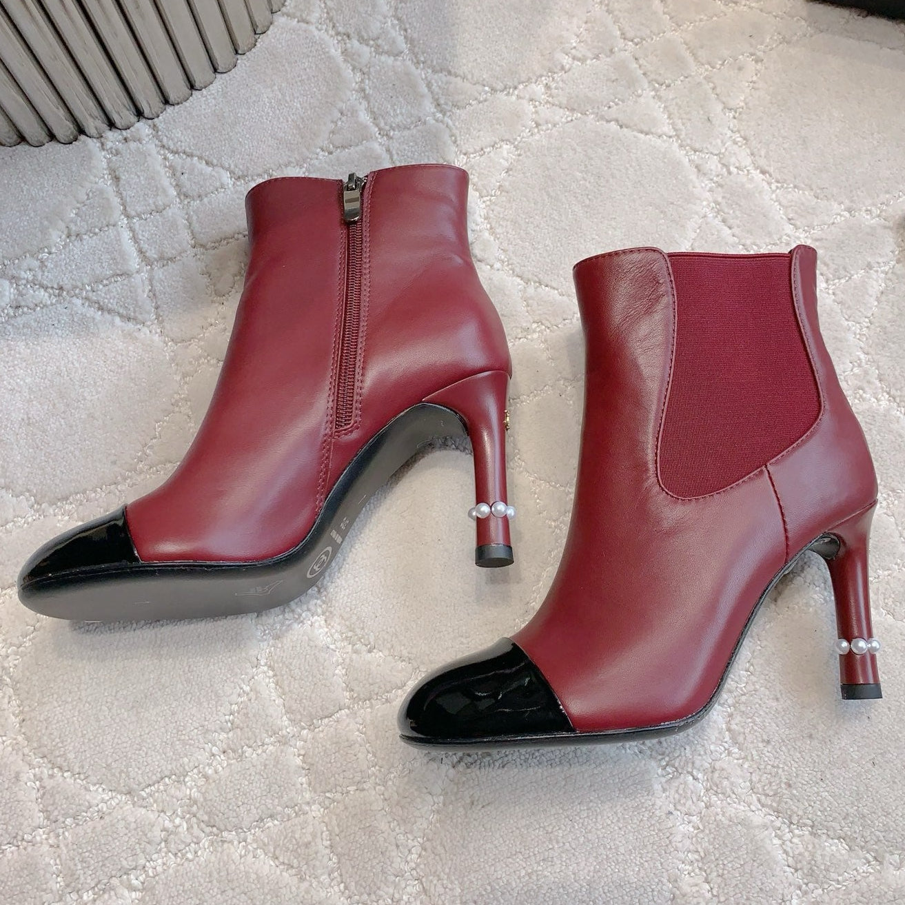 CC 25 Pearl Heel Boot Burgundy Black Calfskin 516654