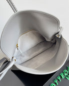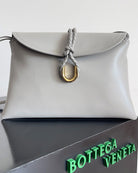 BV Liberta Crossbody Bag Buckle 30cm Silver Gray Cowhide