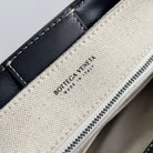 BV Small Andiamo 25 In Beige Canvas Black Calfskin 209015