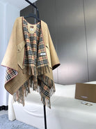 CHECK CAPE IN SAND BROWN WOOL 410154