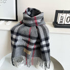 CHECK SCARF 180 CM IN SMOKE GRAY MIX BLACK CASHMERE 405482