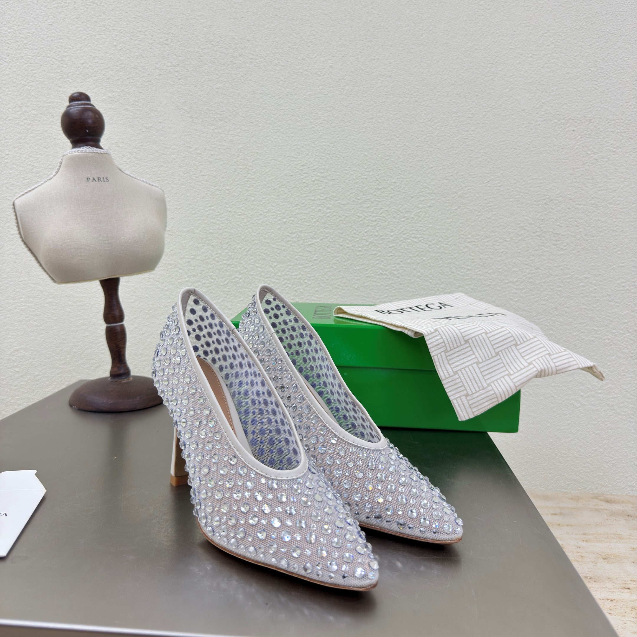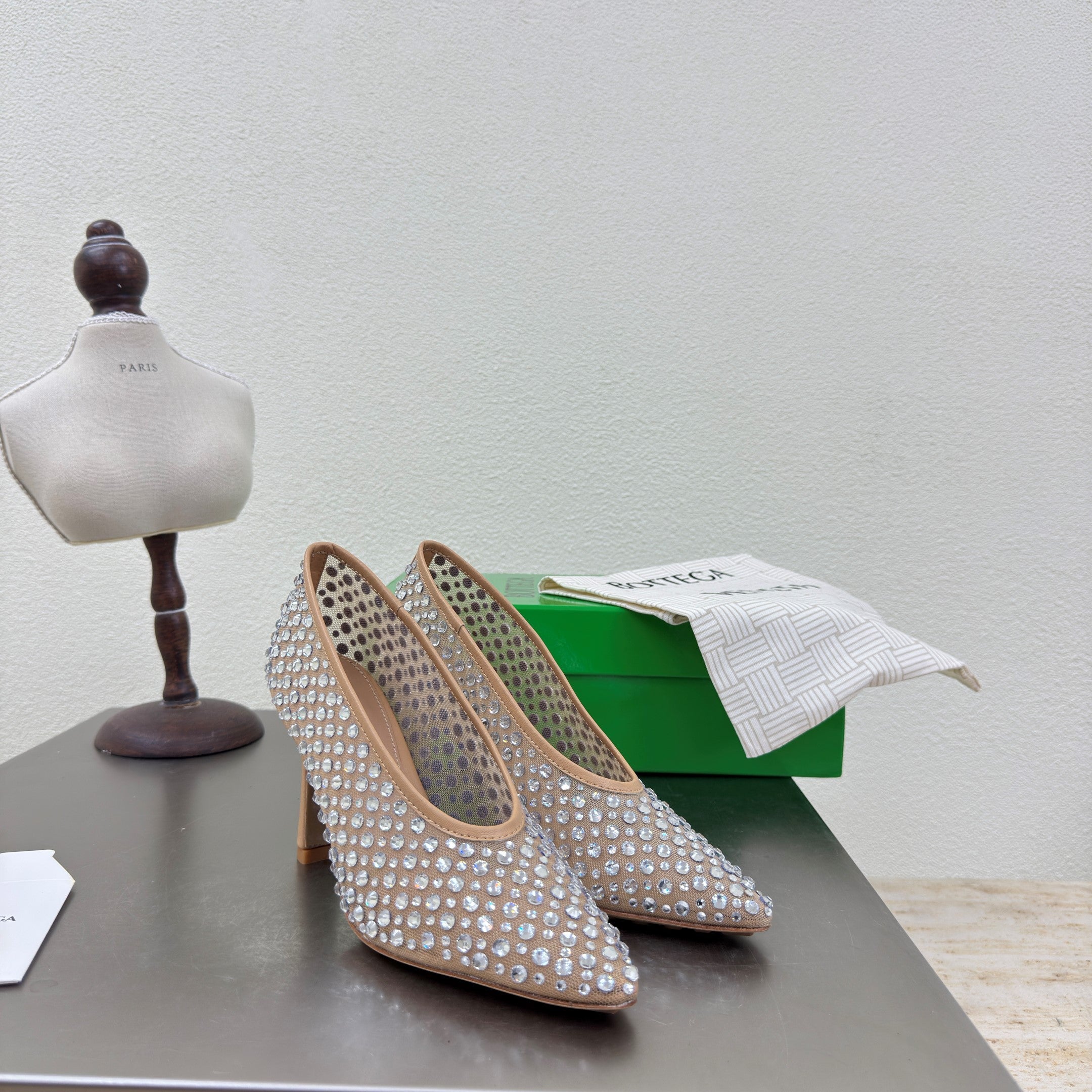BV Rhinestones Sofia Pump 90mm Beige Mesh 428480