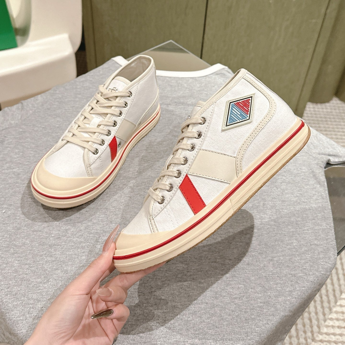 BV Eliot Sneaker Red/Light Yellow Cotton Calfskin 446194