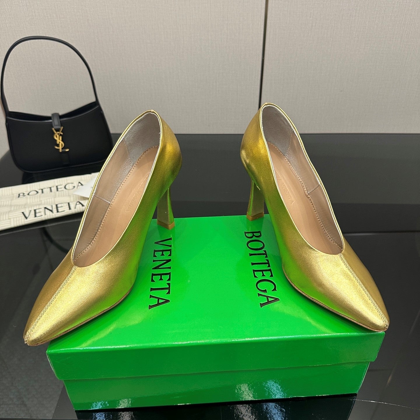 BV Pump 90mm Gold Calfskin 427644