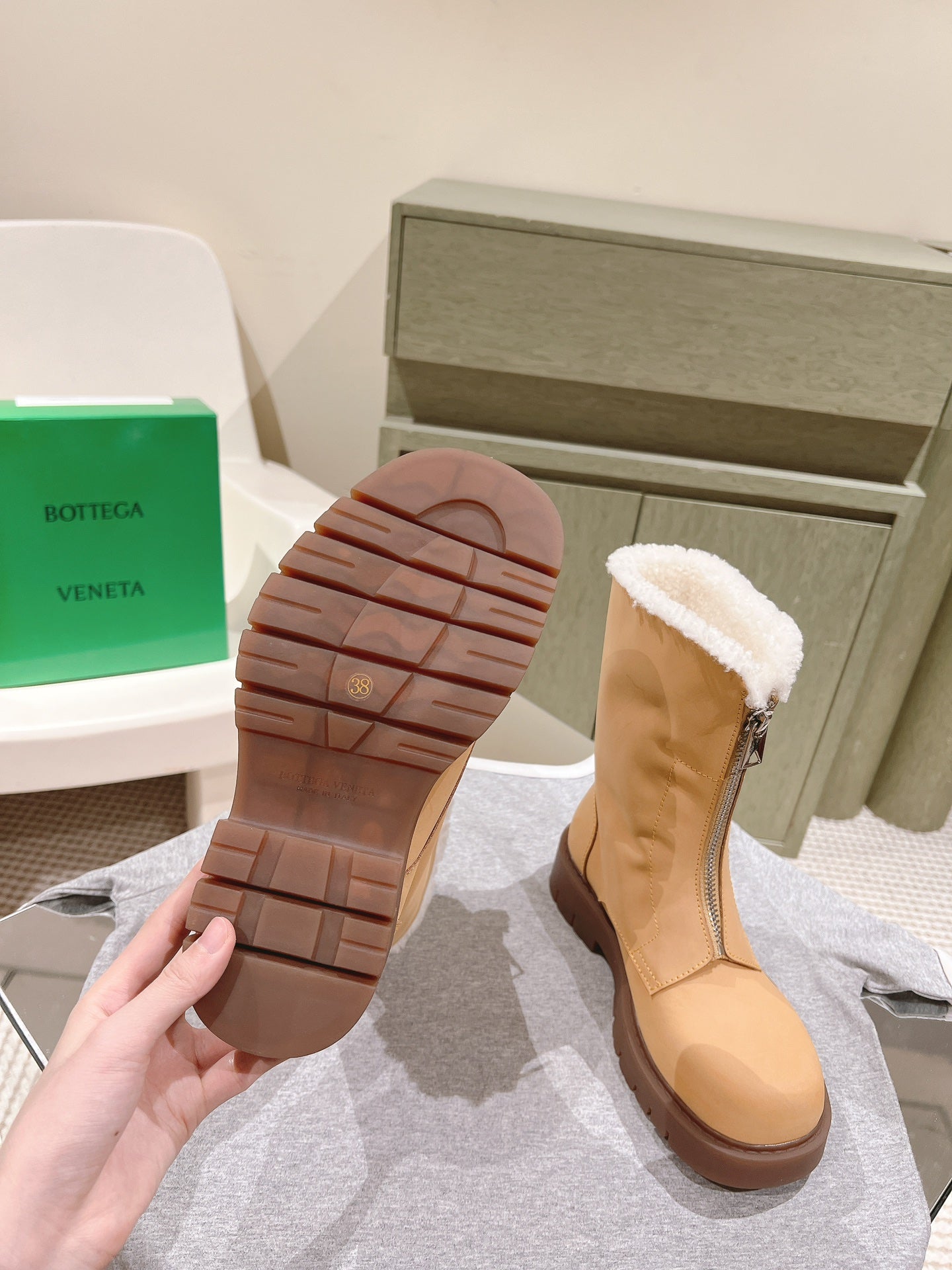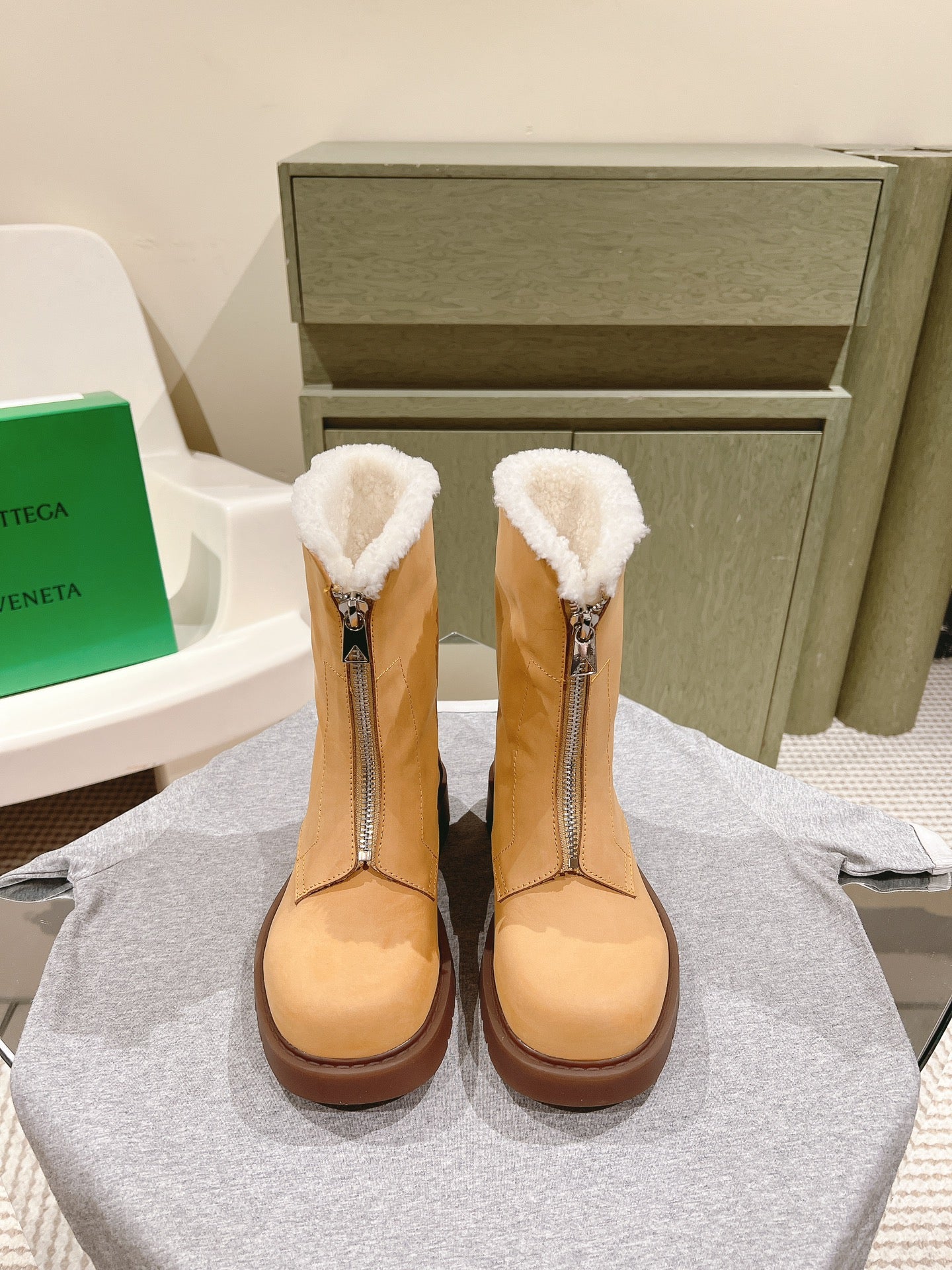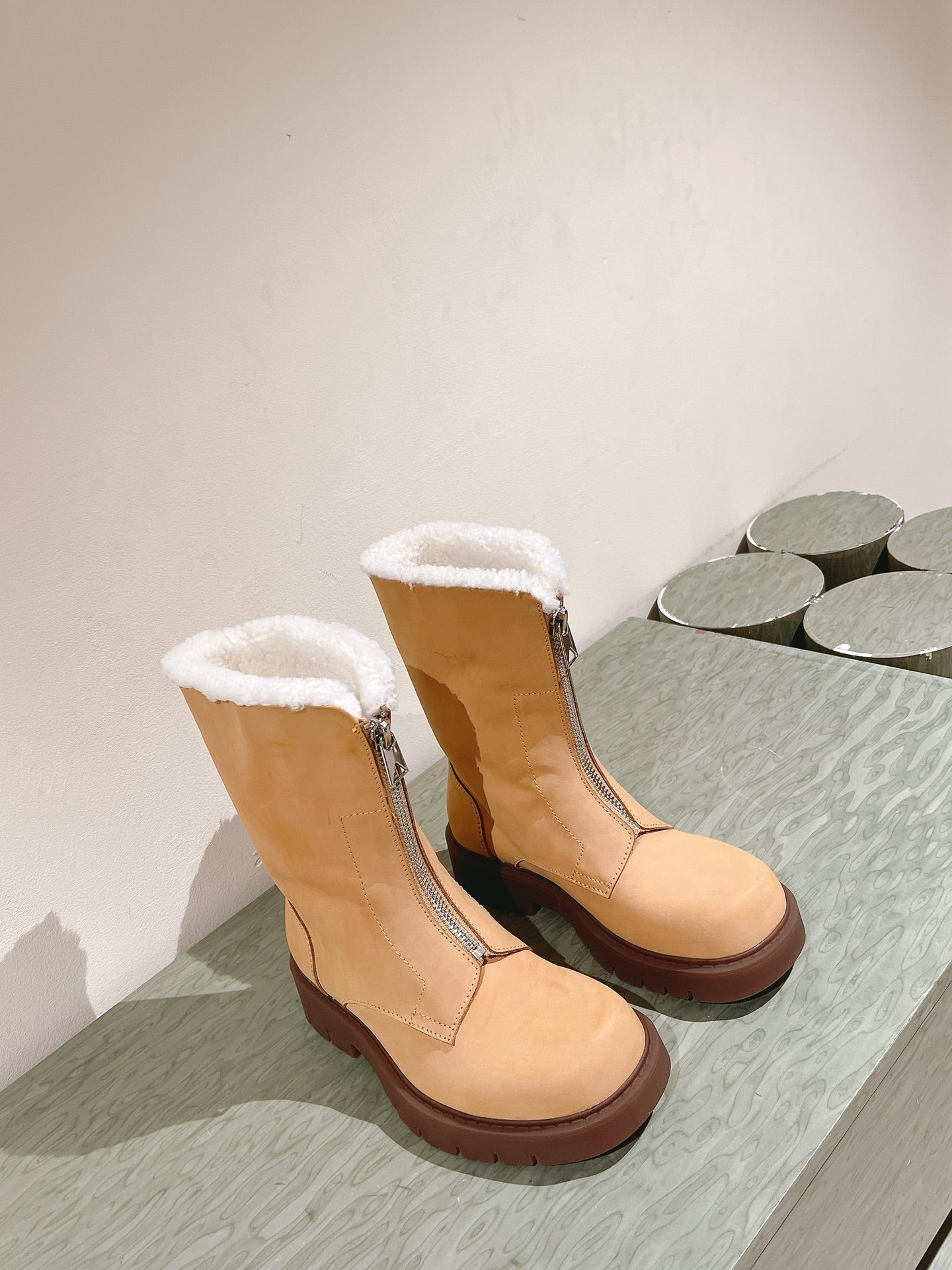 BV Haddock Ankle Boot 50mm Light Brown Cowhide Shearing 446189